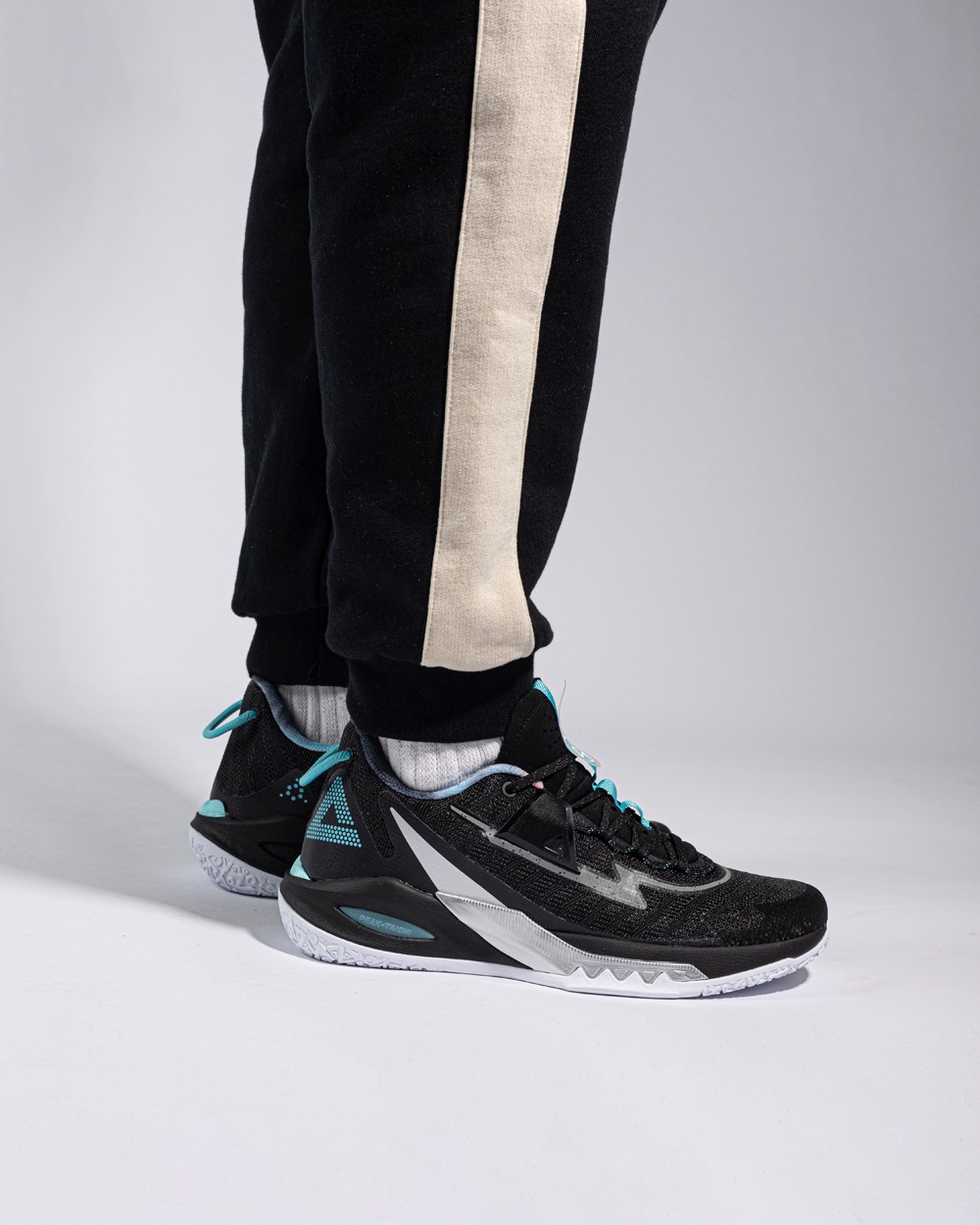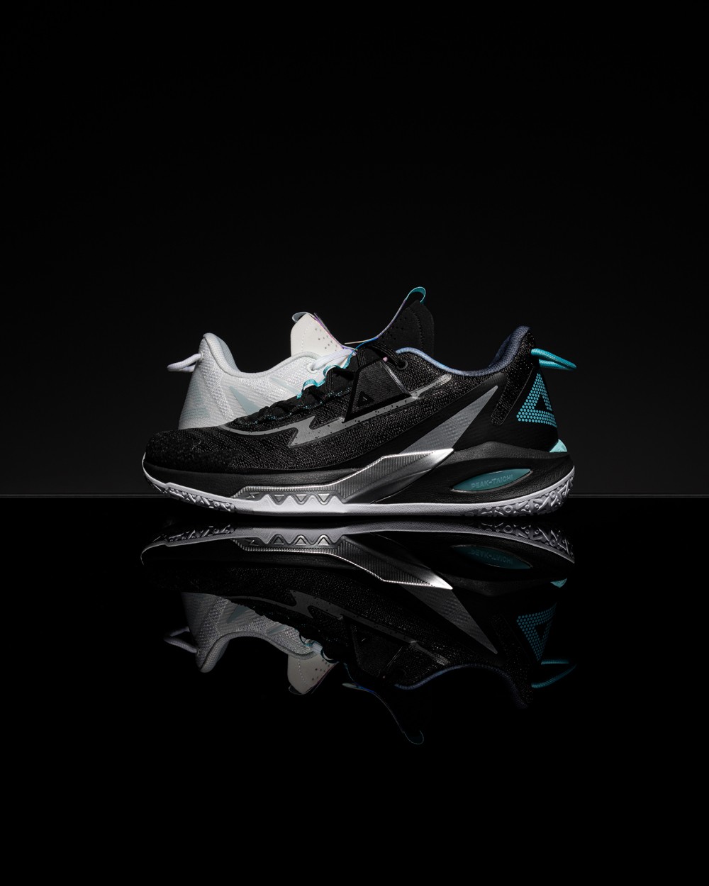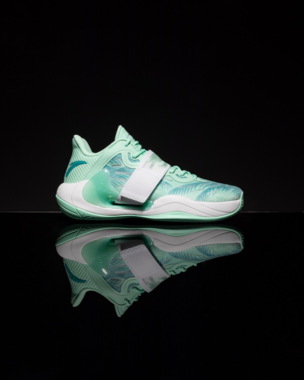 整双鞋以薄荷绿色呈现,高强度网纱鞋面兼顾实战与透气性,前掌内置安踏氮科技材料。
