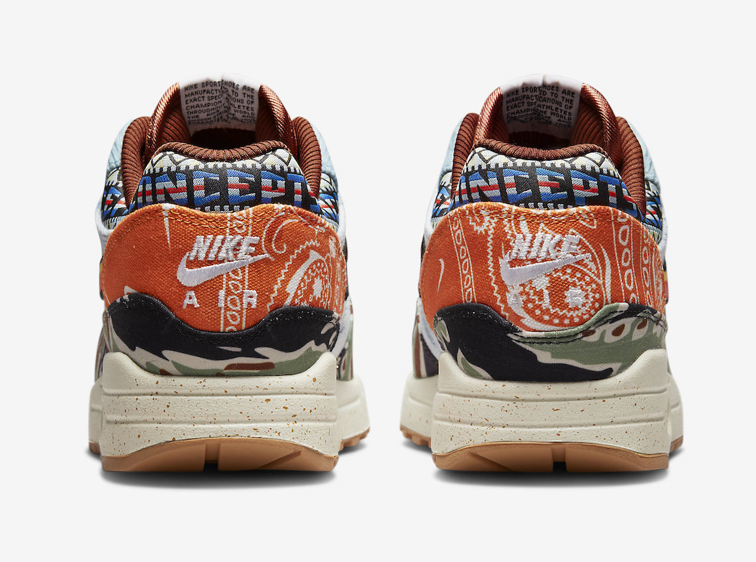 近日,第 2 款配色 Concepts x Nike Air Max 1 “Camo” 公布了官图和市售信息!