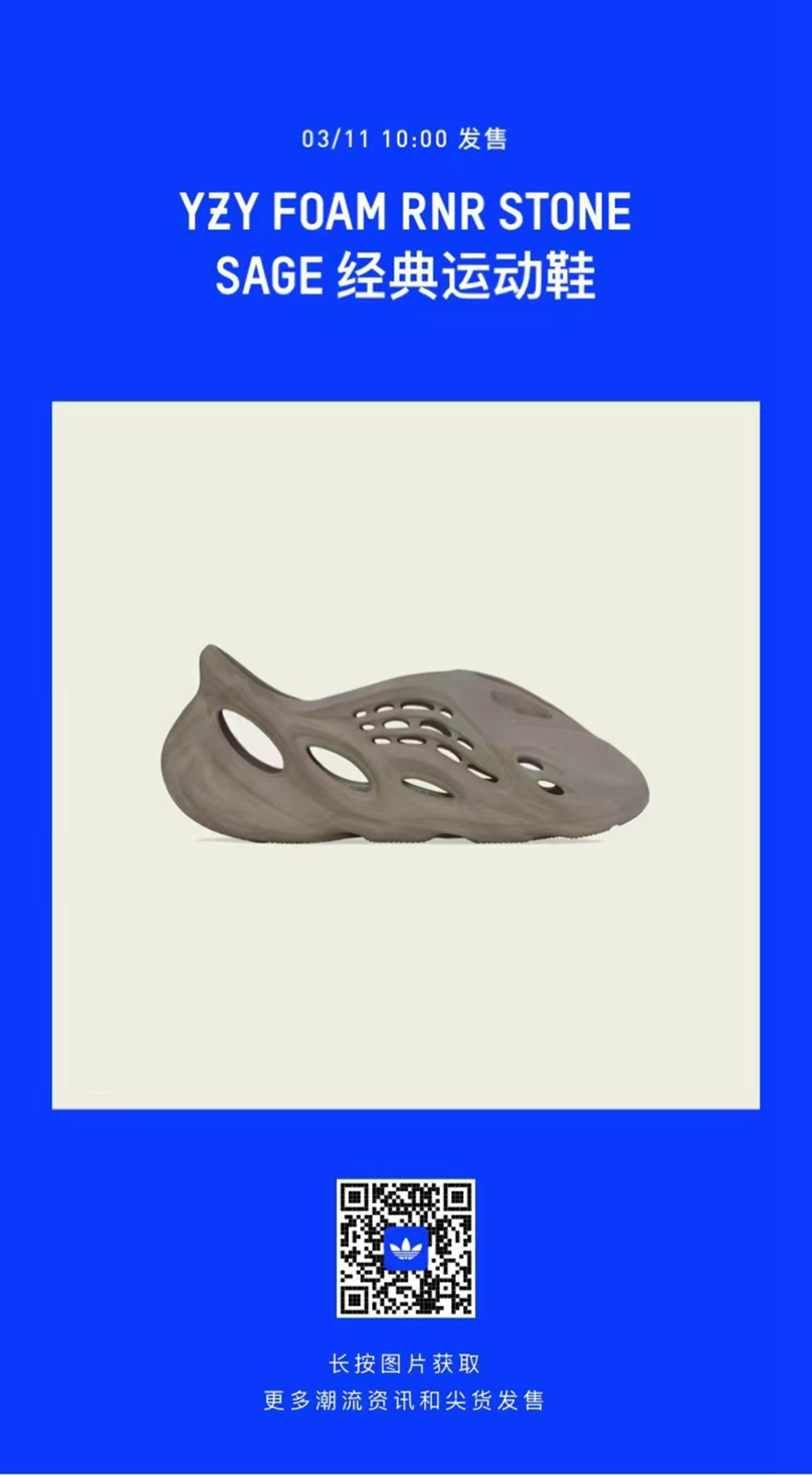 目前,全新 Yeezy Foam Runner “Stone Sage” 现已正式上架 CONFIRMED App 和官方微信小程序,并将在 3 月 11 日上午十点正式发售,尺码涵盖成人、儿童和婴童,售价分别为 ¥859 元、¥659 元、¥459 元。