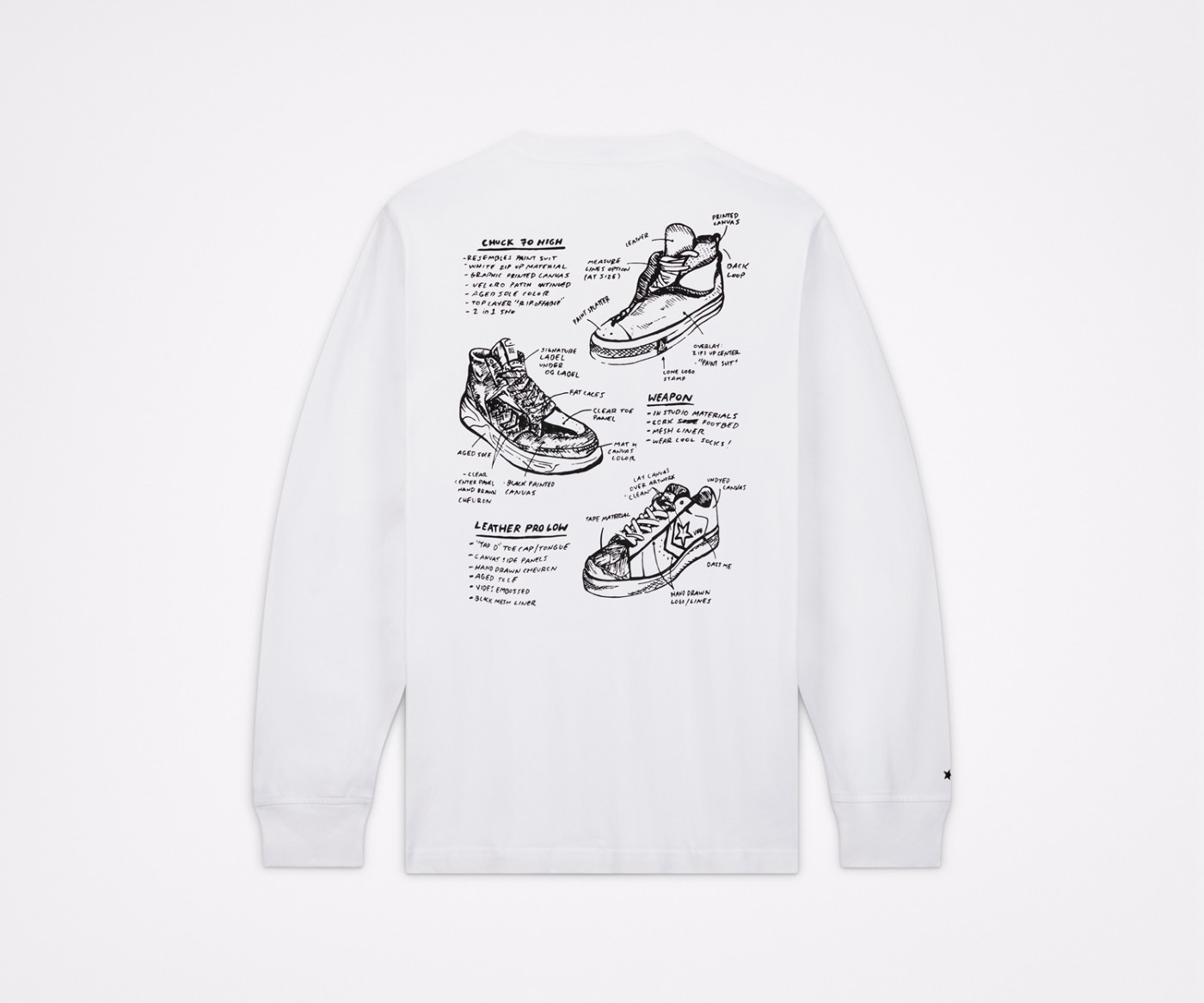本次联名鞋款包括 Chuck 70、Weapon CX 和 Pro Leather,色彩均使用经典的黑白配色。