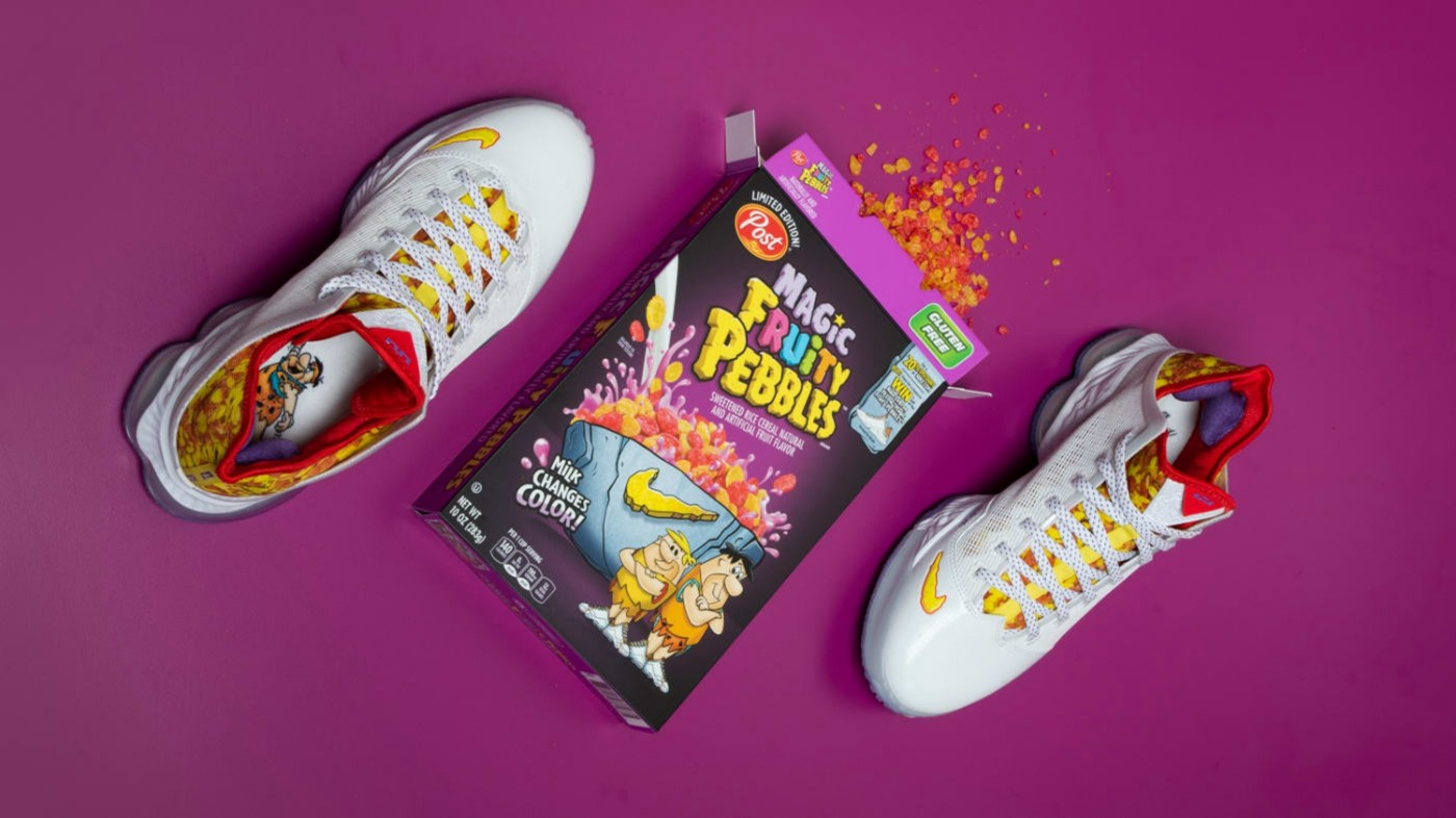 整体配色灵感来源于詹姆斯最爱吃的早餐麦片 Fruity Pebbles,五彩缤纷的图案给玩家们留下了深刻印象。