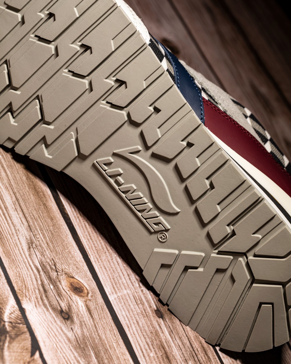 细节呈现相当精致,鞋头注入奢华感的打孔皮革包边,后跟则采用压印皮料手法点缀李宁老标。