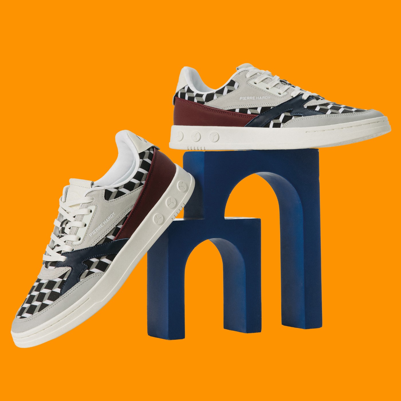 鞋面融入 PIERRE HARDY 标志性的黑白 “Cube” 立方体透视图案元素。