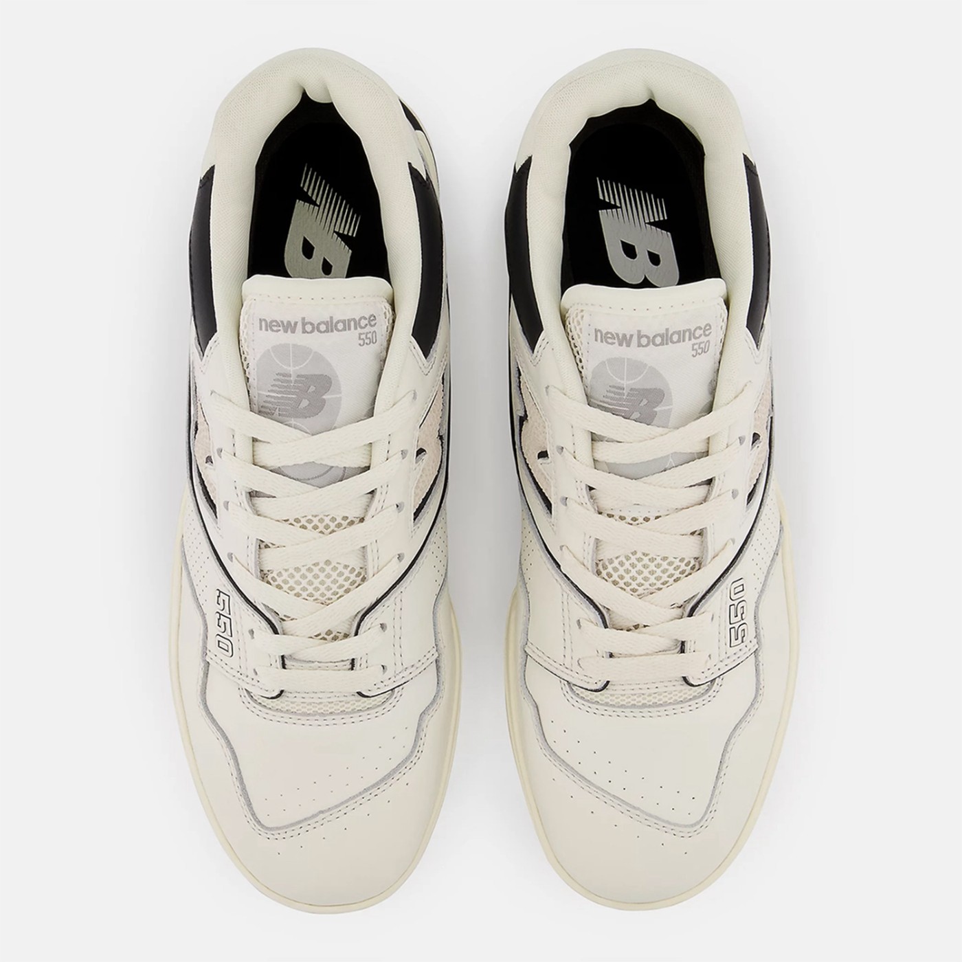 鞋舌采用网布材质打造,顶端有着 New Balance 550 的字样和一个篮球的图案。