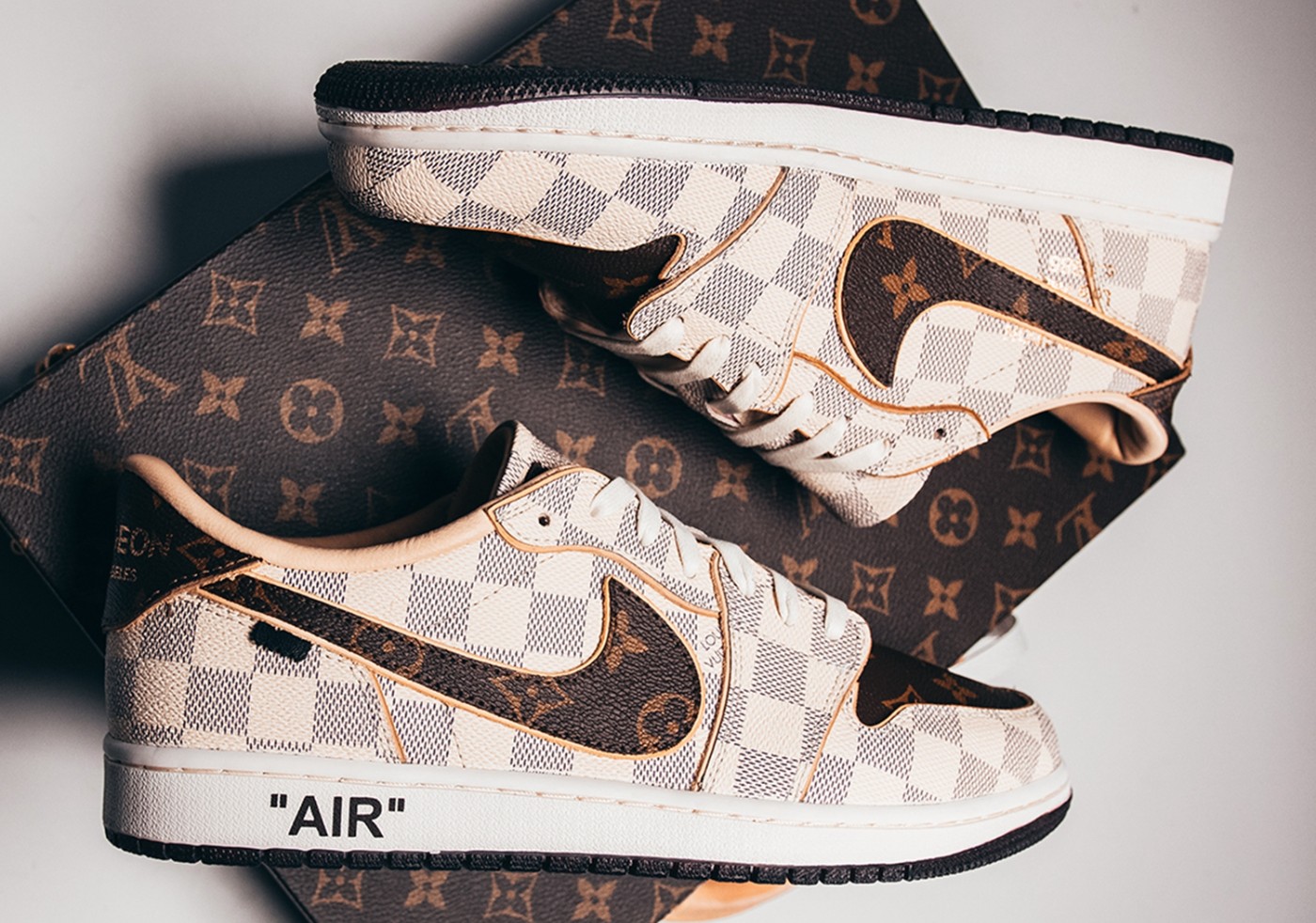 套装分为高低帮两双 Air Jordan 1,设计灵感来自于 Damier 和 Monogram Louis Vuitton x Air Force 1。