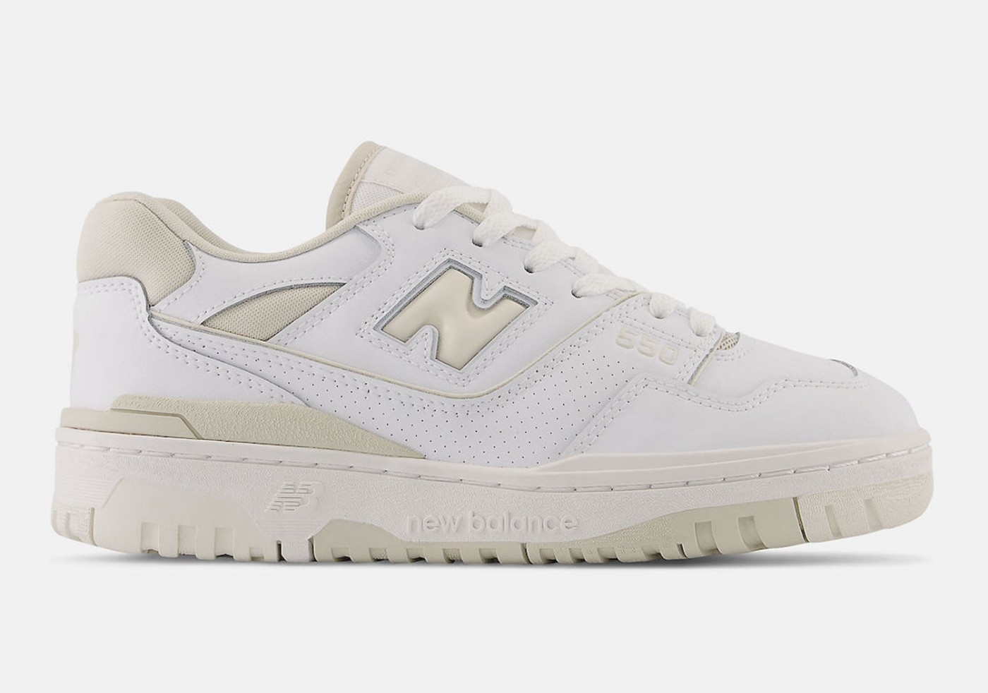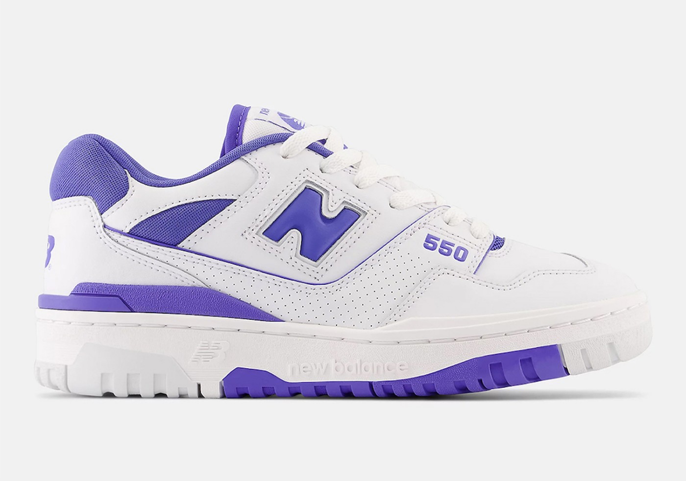 近日,两双全新配色 New Balance 550 释出了官图。分别在白色基底上加入奶油白和紫色点缀,是 550 经典配色方案。