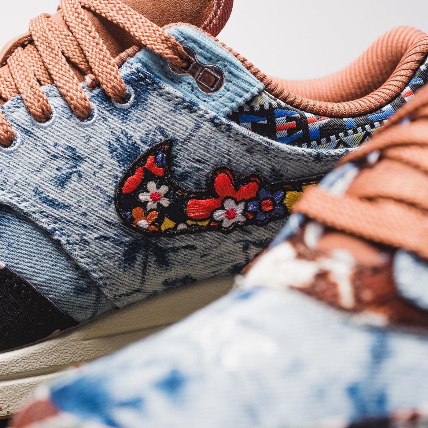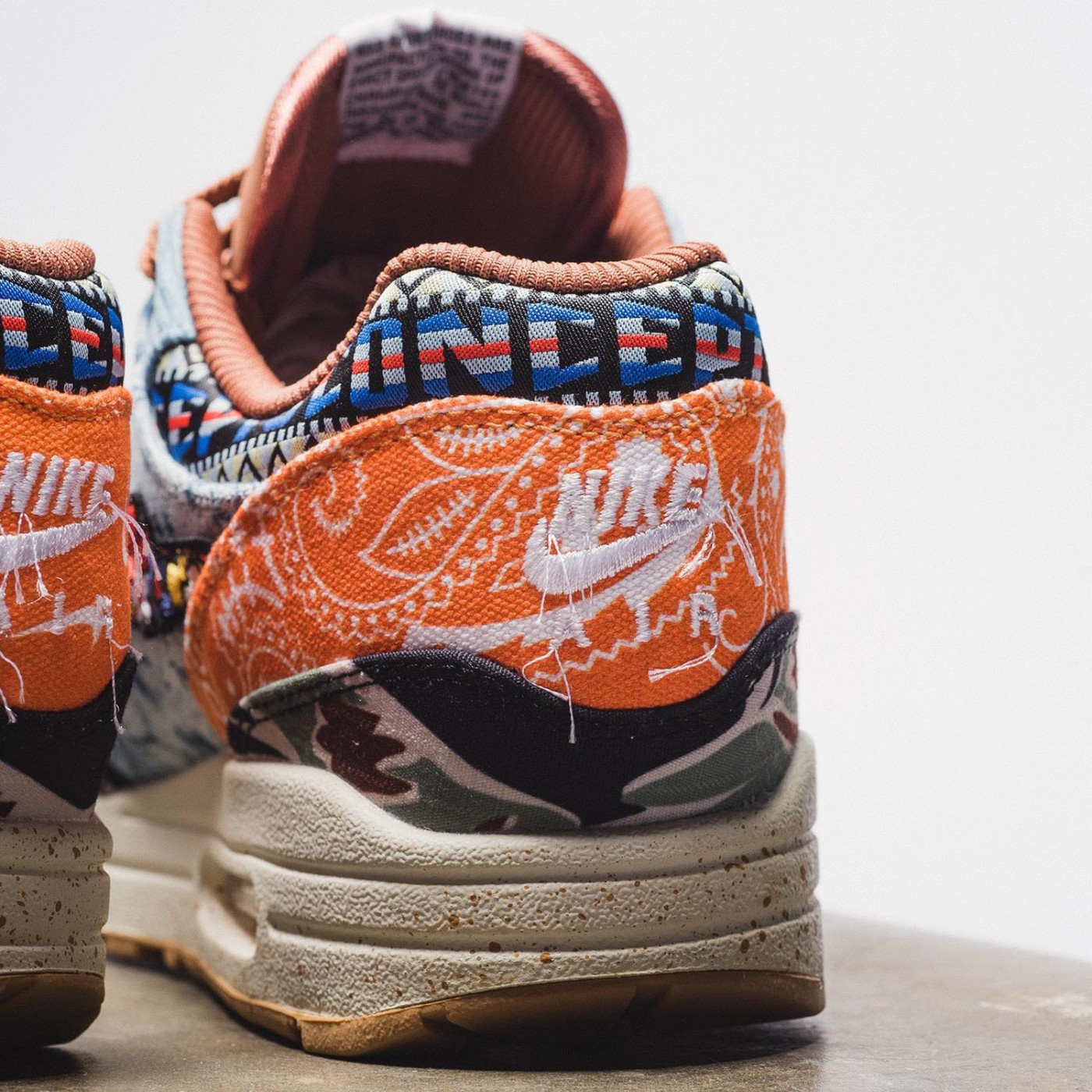 鞋跟部位带有腰果花图案,搭配上涂鸦字体以及 Nike Swoosh 破坏风格更能凸显个性。