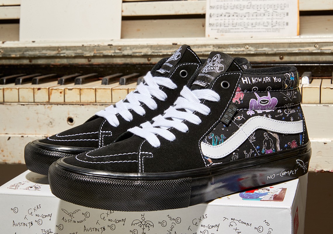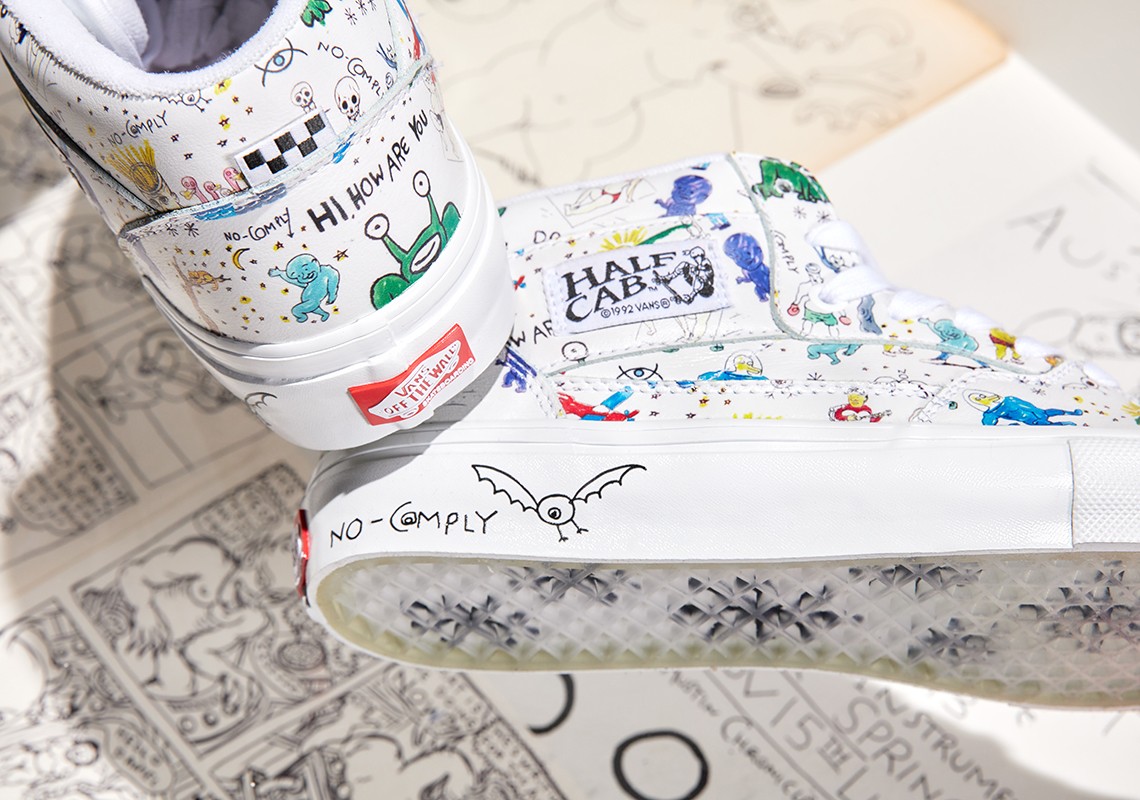 为纪念 Daniel Johnston 与 Vans 合作 15 周年,No-Comply 推出了全新的 Half Cab、Grosso Mid和 Trek 拖鞋系列。