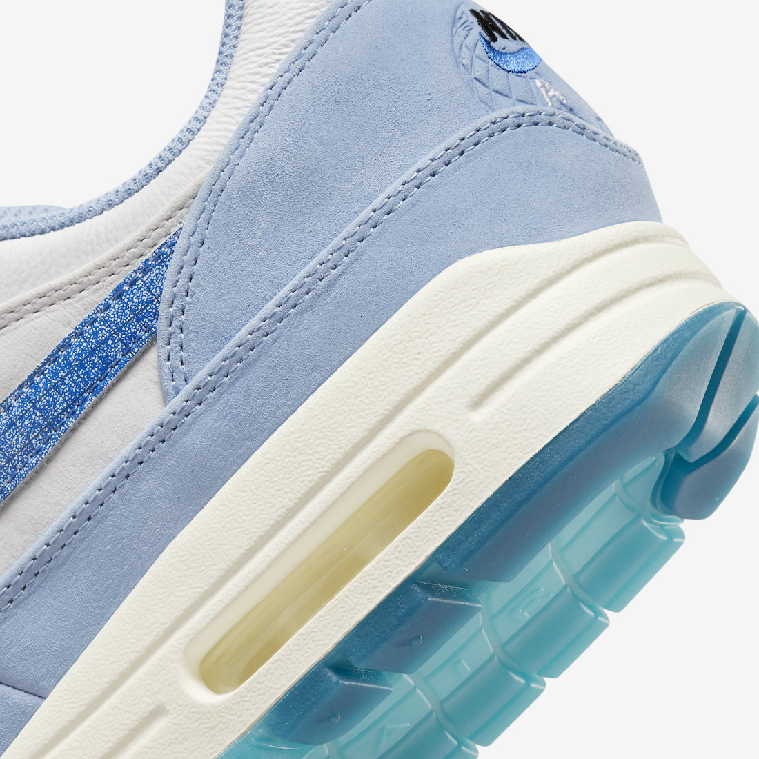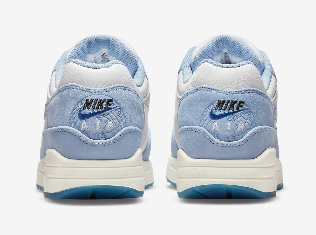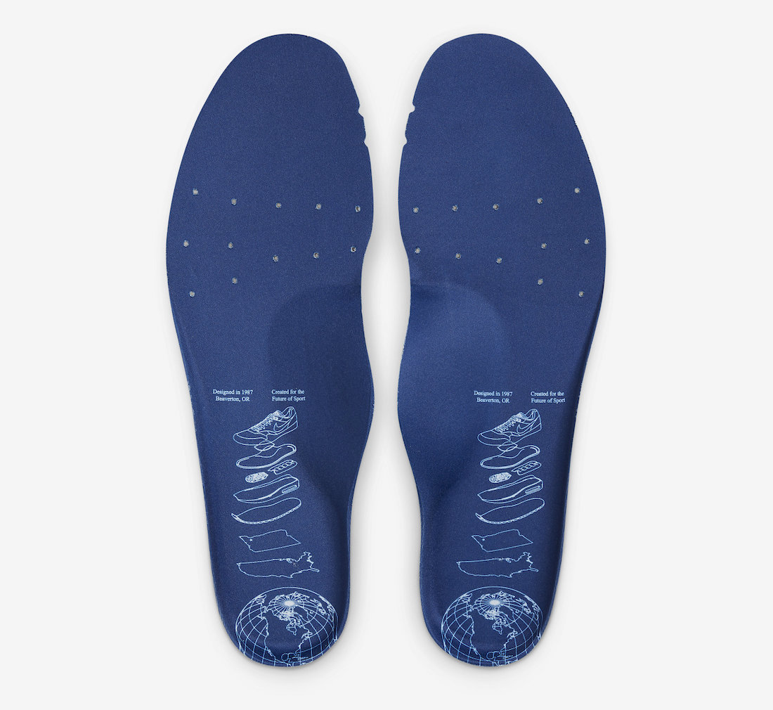 后跟精美刺绣处有压印的蓝色地球图案,鞋垫上同样印有地球图案,还有独特的 Air Max 1 分解图,丰富设计彰显高规格。