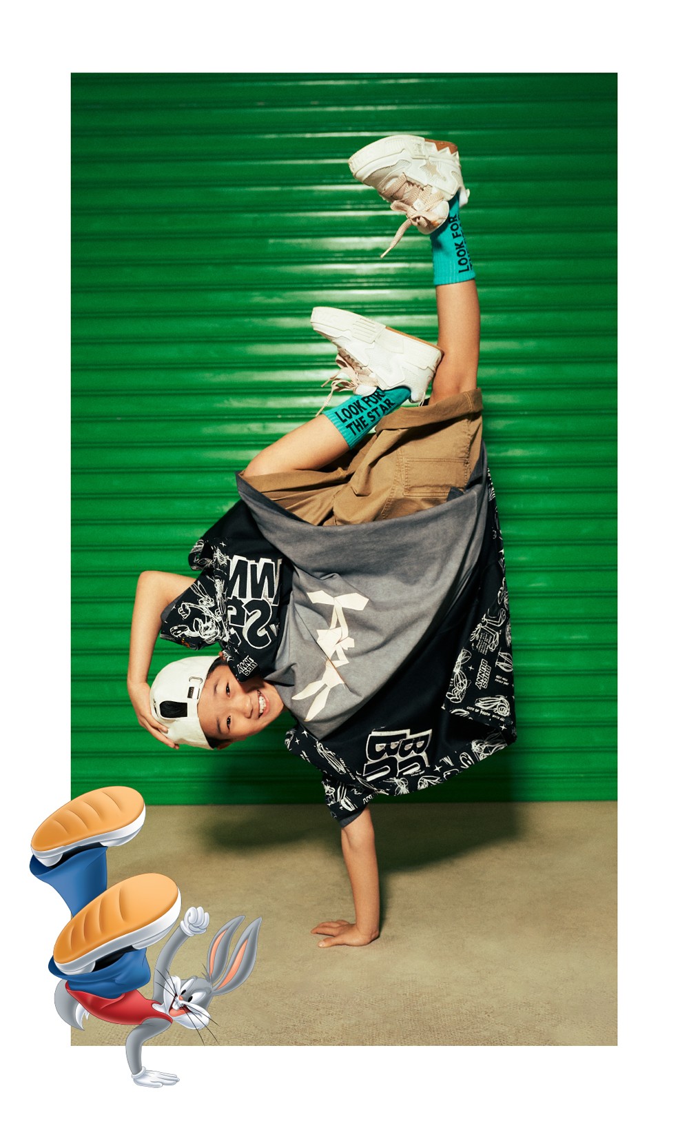 该联名系列以 LOONEY TUNES《乐一通》中的经典动画人物:兔巴哥、达菲鸭、崔弟为创作灵感,结合扎染、炒色、夜光、刺绣,注入棒球衫、T 恤和板鞋中。