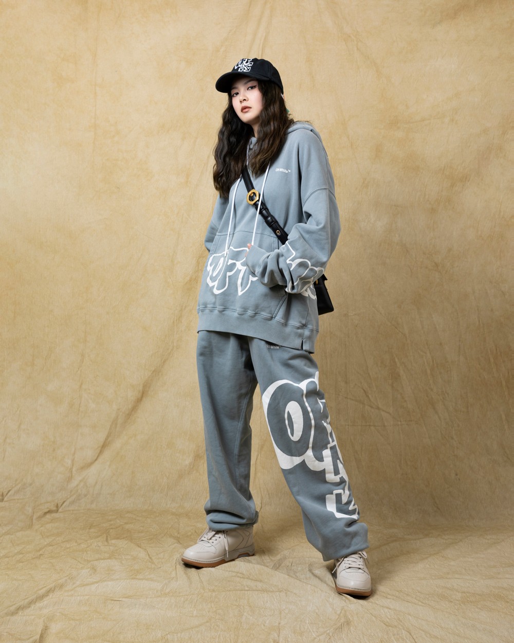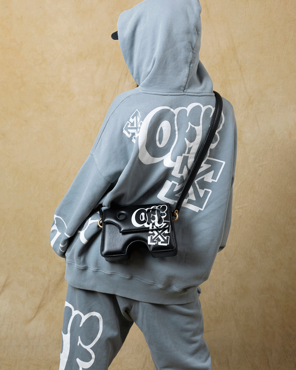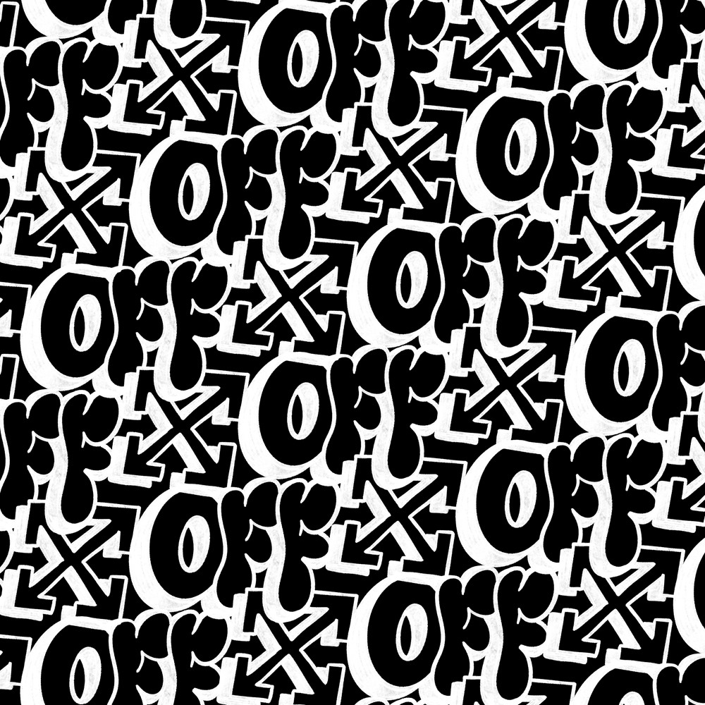 OFF-WHITE™ 标志性的箭头 Logo 与粗号手绘字体「OFF」的融合元素,更具街头风格。