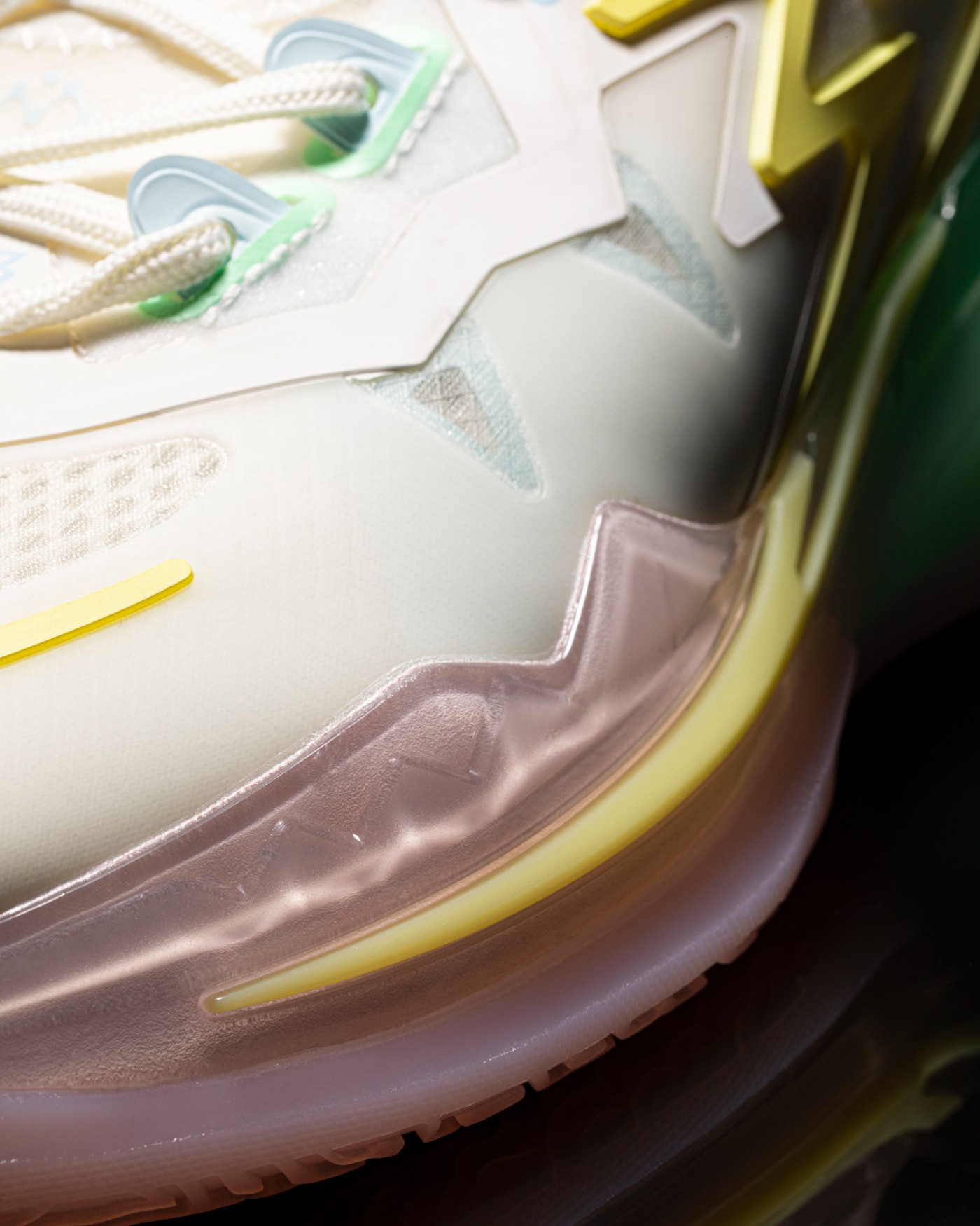 这双球鞋保留了延续自禅 3 系列的后跟跟进设计,让球鞋在跑动过程中更具整体性。