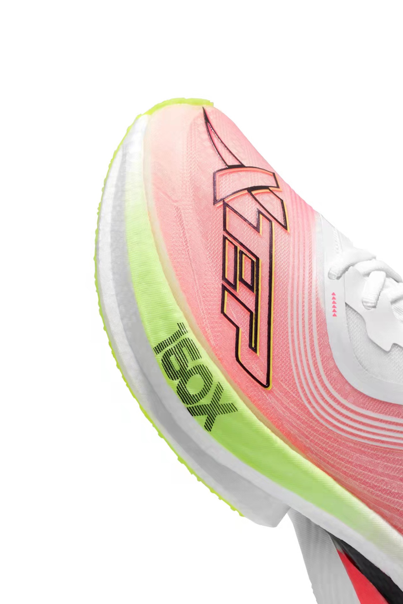 内嵌贯穿全掌的异性碳纤维抗扭转板,碳板的弯曲刚度对比二代提升 48.1%,综合推进性能提升 4.9%。
