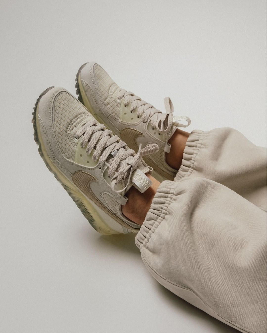 半透明水晶中底搭配解构风格 Swoosh,颜值颇高,不禁让人想起 OFF-WHITE x Nike Air Max 90。