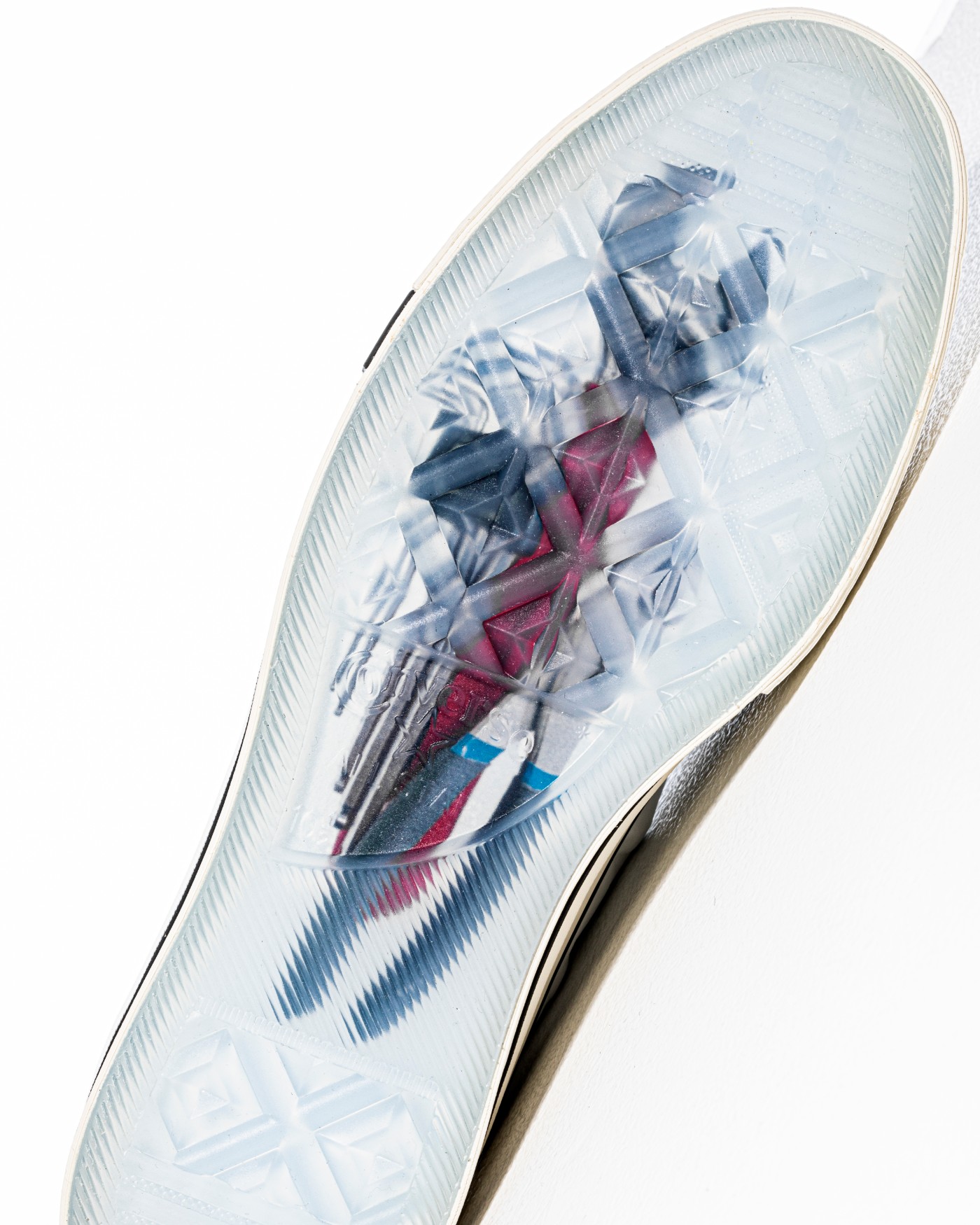 半透明水晶大底之下印有扳手钳子等工具,颜值设计全部拉满,让人不忍心上脚。