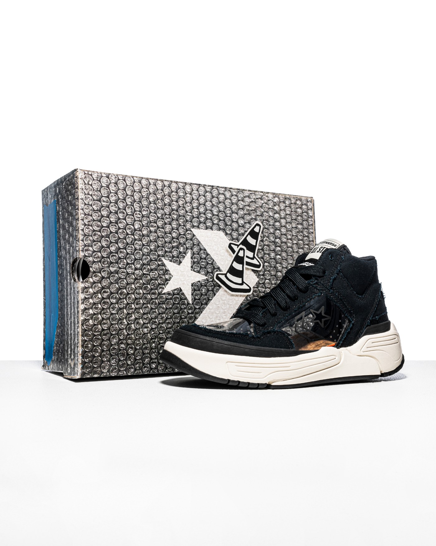 本次联名系列包含 Chuck 70、Weapon CX 和 Pro Leather 三双鞋款,色彩均使用经典的黑白配色。