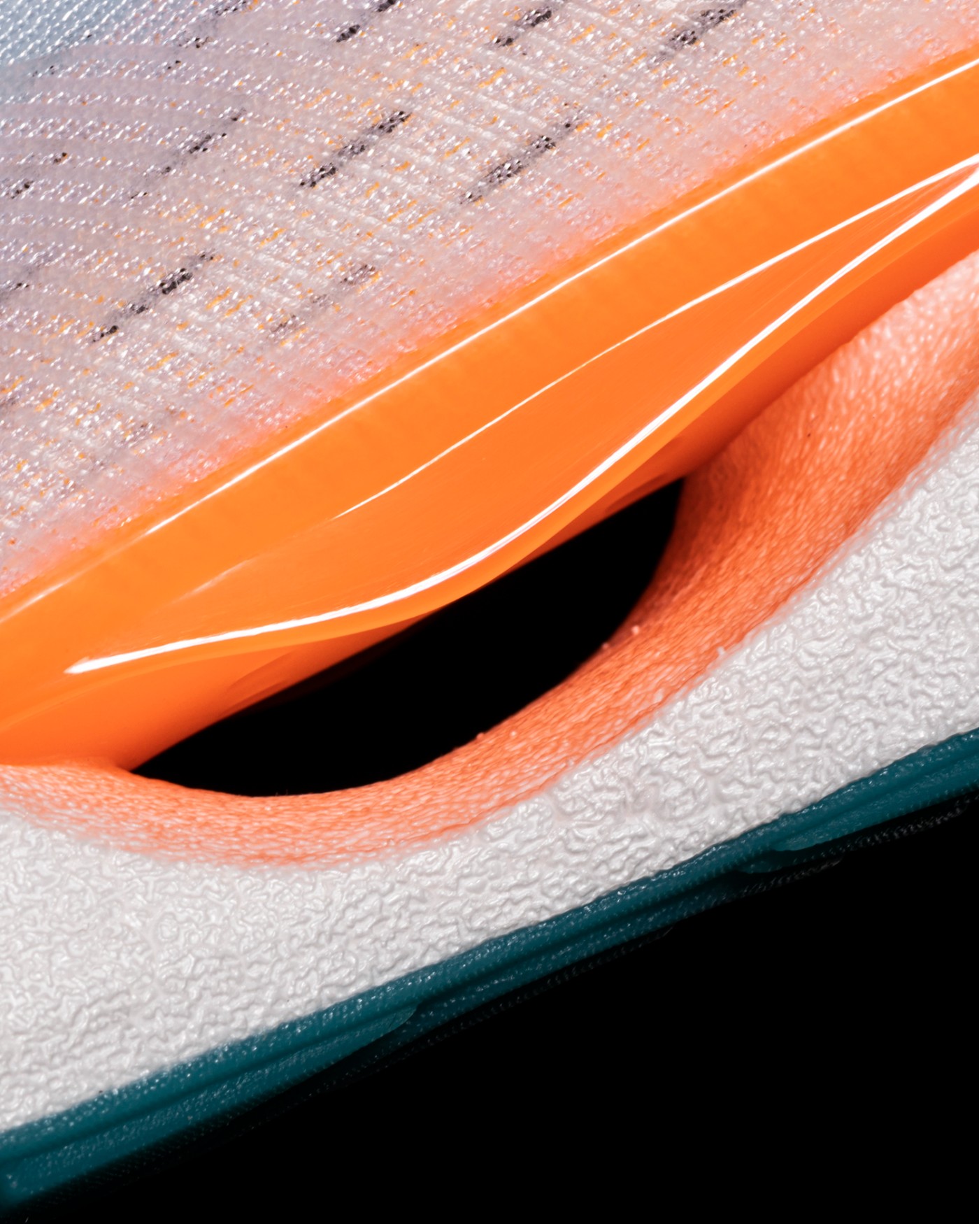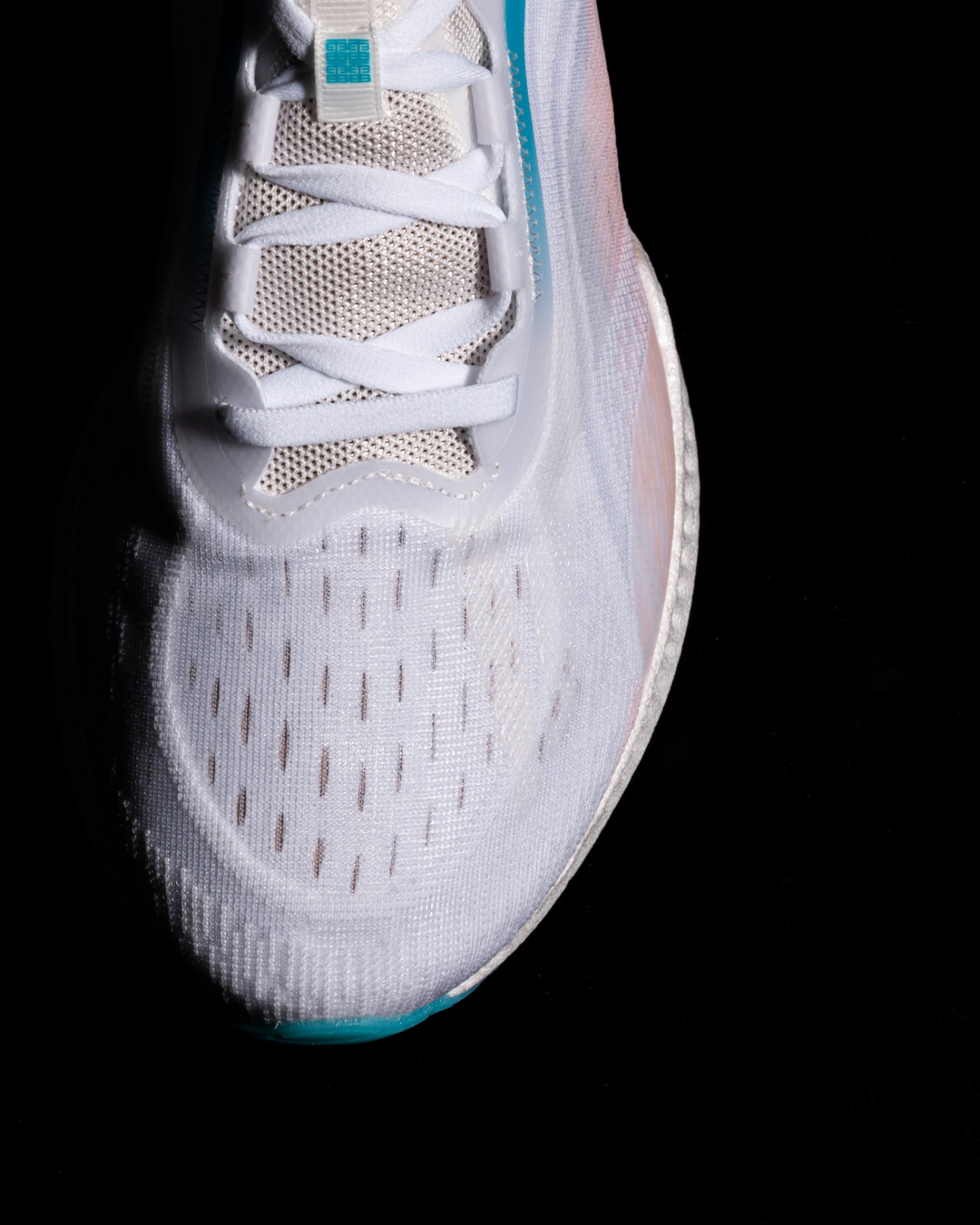鞋身中段在贾卡织物上加入更大的透气孔,并且有热压材质加强,让鞋面对脚有更好的支撑作用。