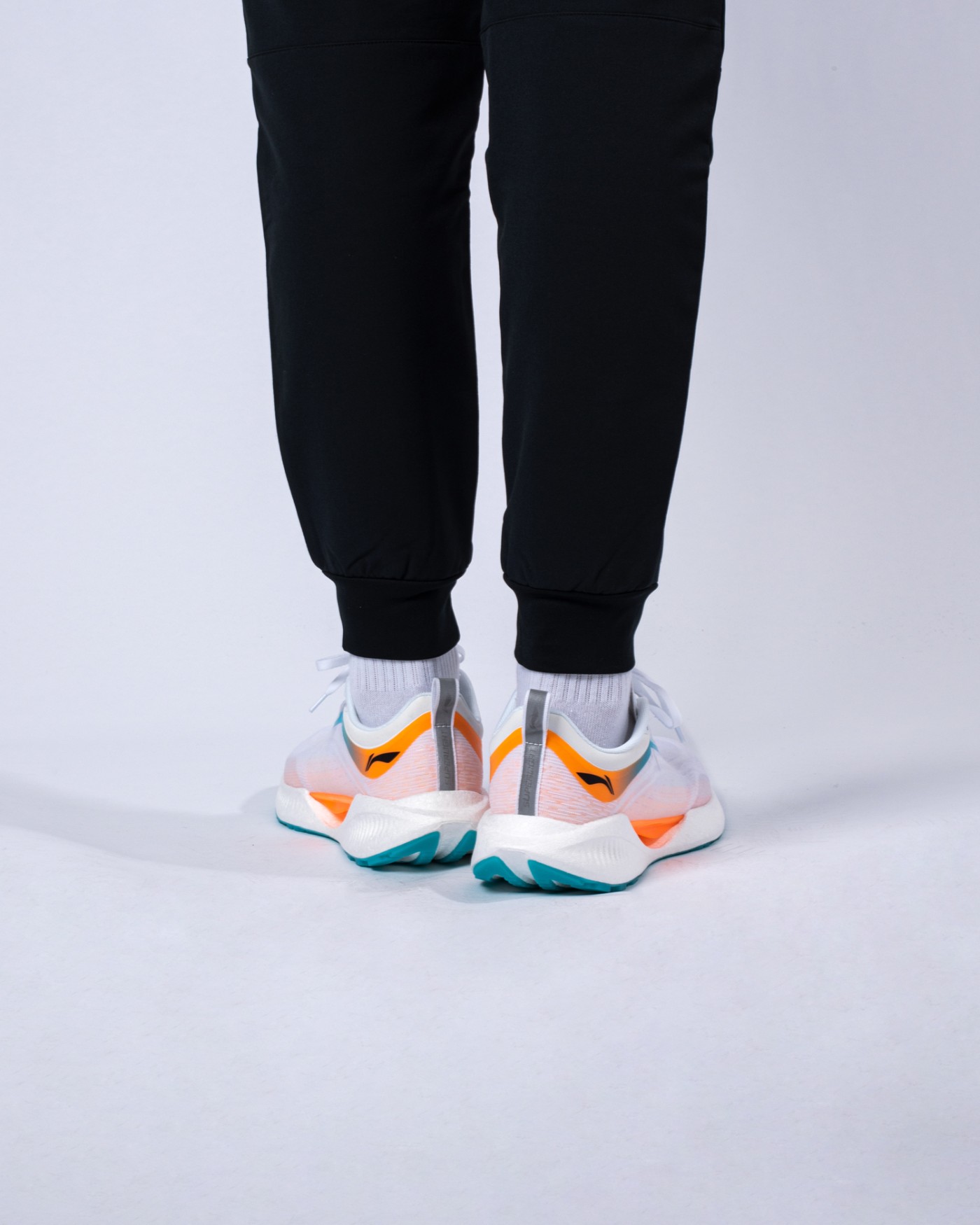 白色为主的鞋面搭配橙色和蓝色的点缀,让这双鞋变得更加百搭,即便是黑色的裤子也不会有任何违和感。