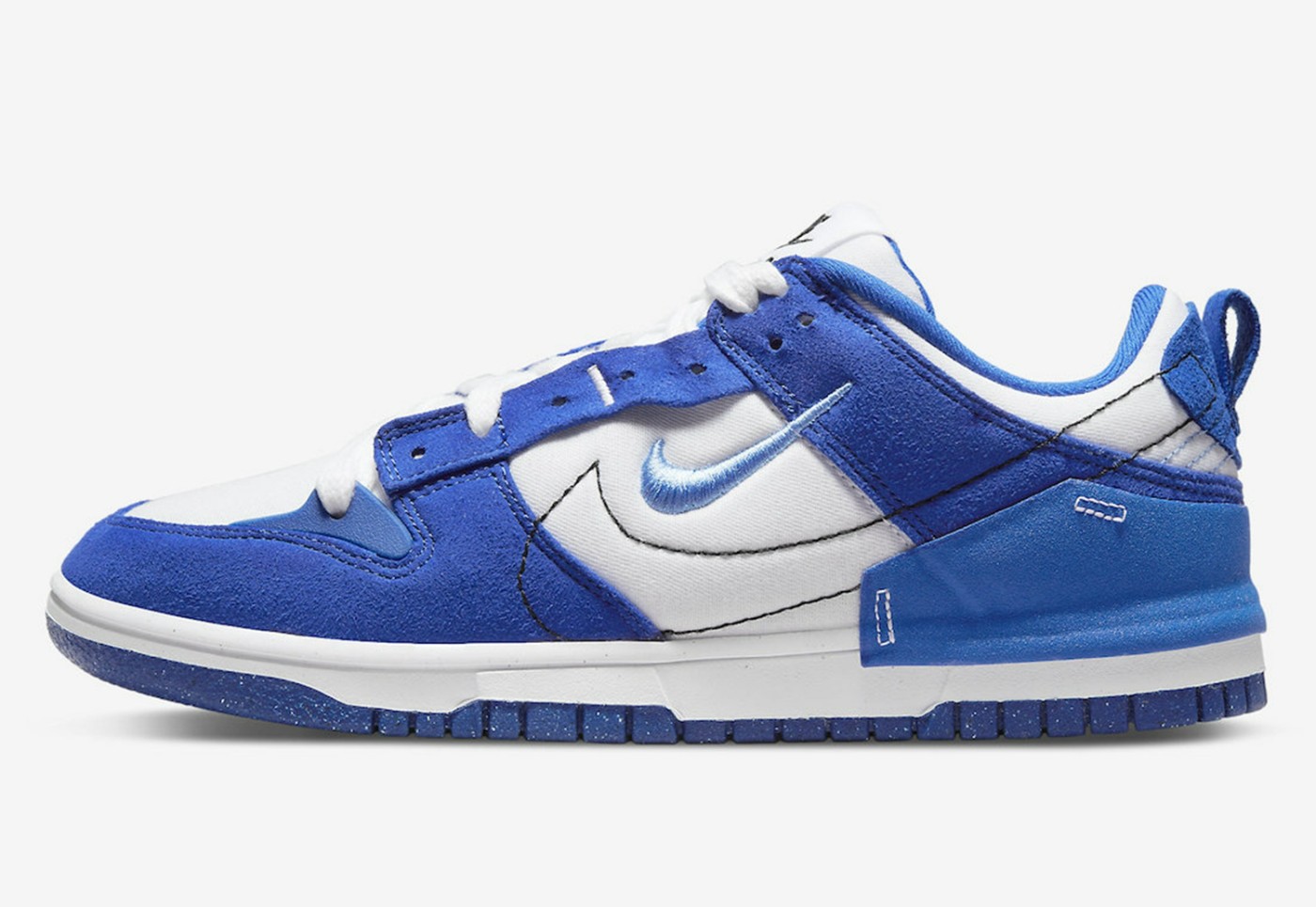 Nike Dunk Low Disrupt 2 延续了此前一贯的解构风格,夸张的车线和拼接设计遍布全身。