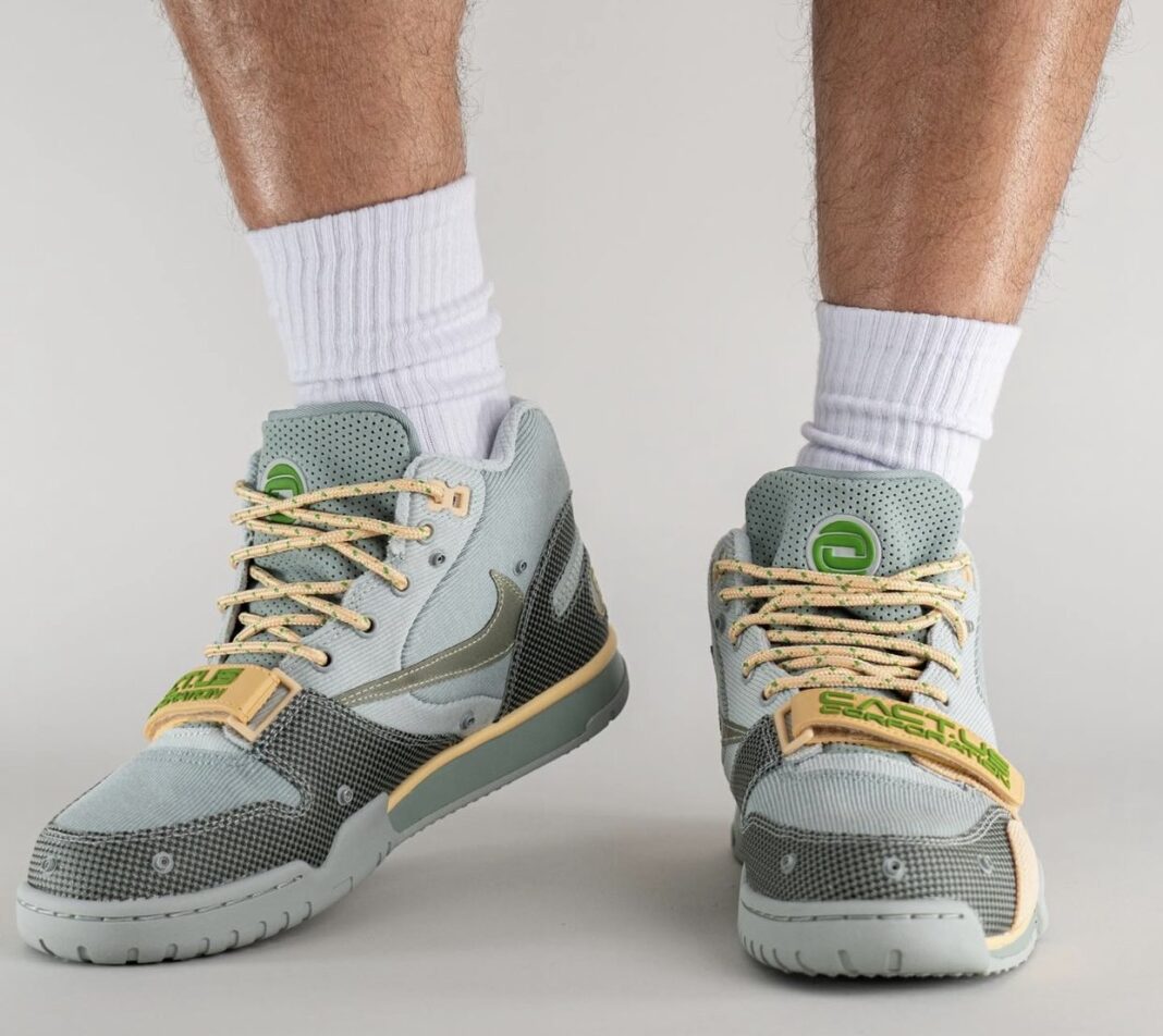 近日,此前曝光多次的 Travis Scott x Nike Air Trainer 1 上脚图曝光。