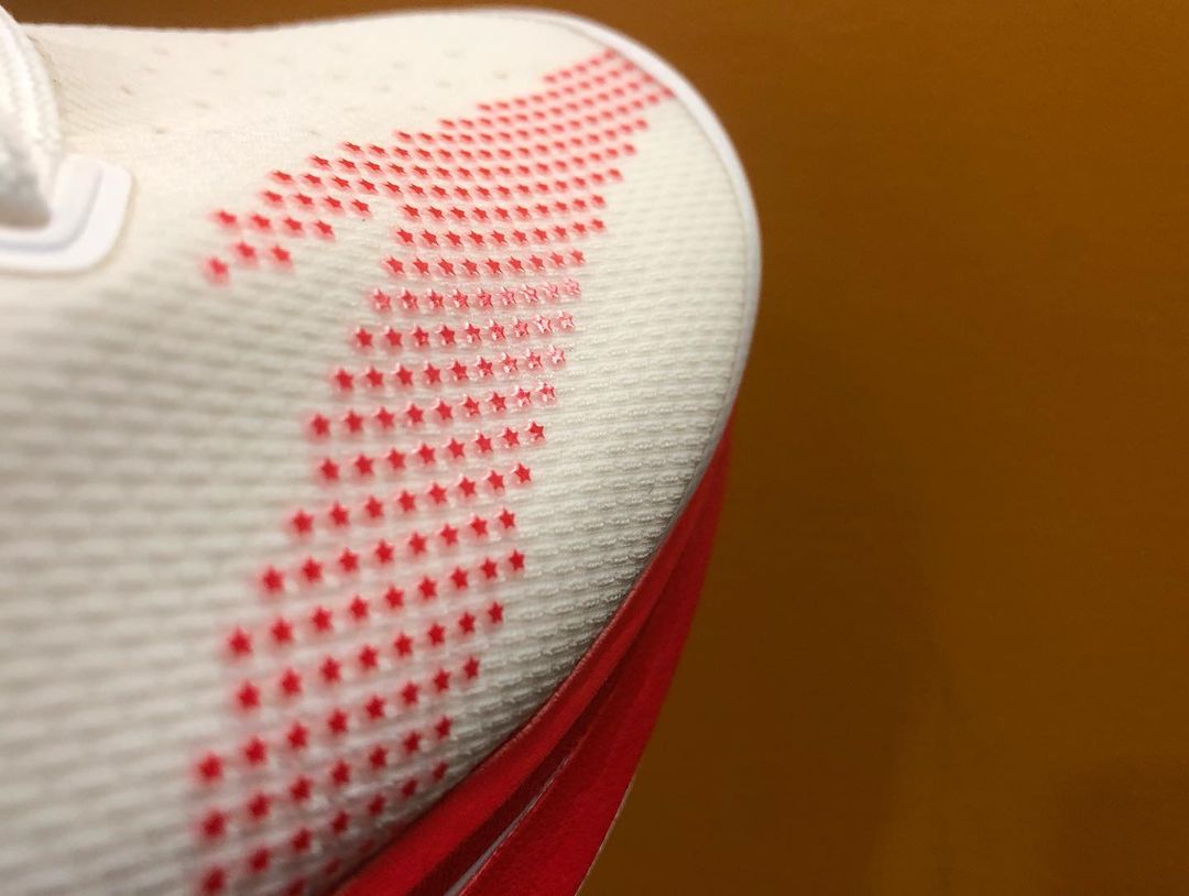 鞋面采用全新纹路的织物打造,鞋头以五角星阵列组成安踏 Logo。