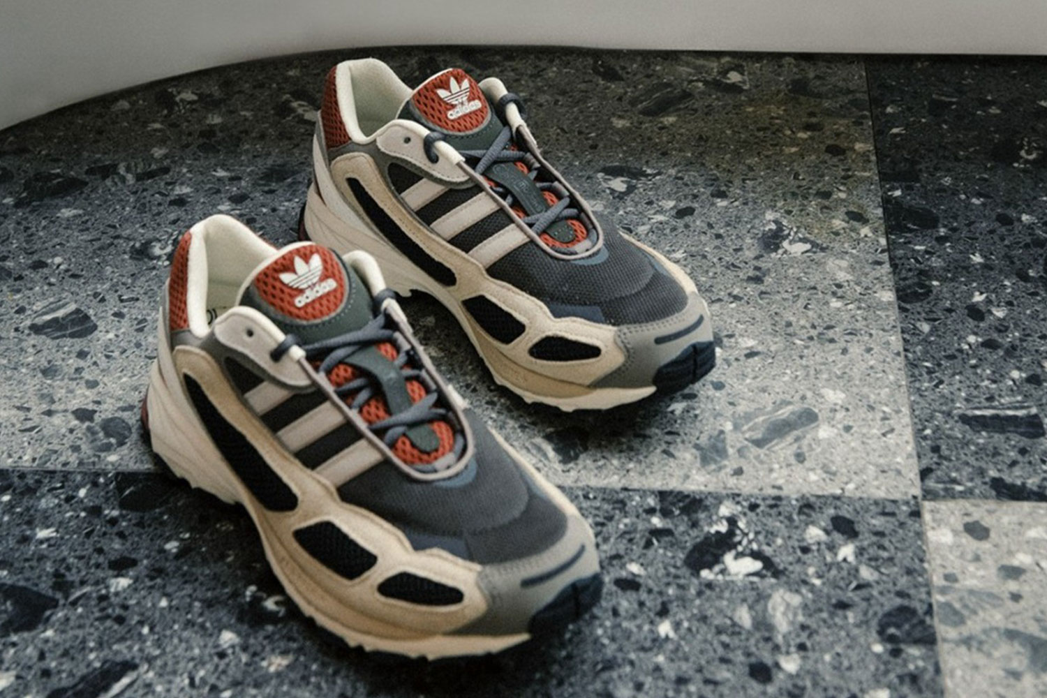 这款 adidas Shadowturf 在鞋型上借鉴 2000 年初期的 adidas JET 跑鞋,并保留了 JET 上经典的三角开窗设计。
