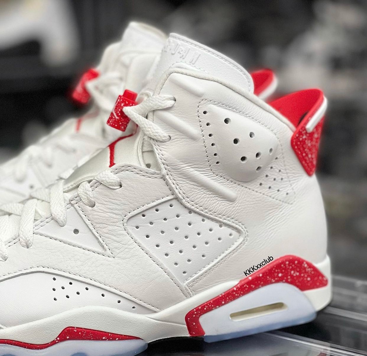 去年年底曝光的一双全新 Air Jordan 6 “Red Oreo” 近日有更多实物图释出。