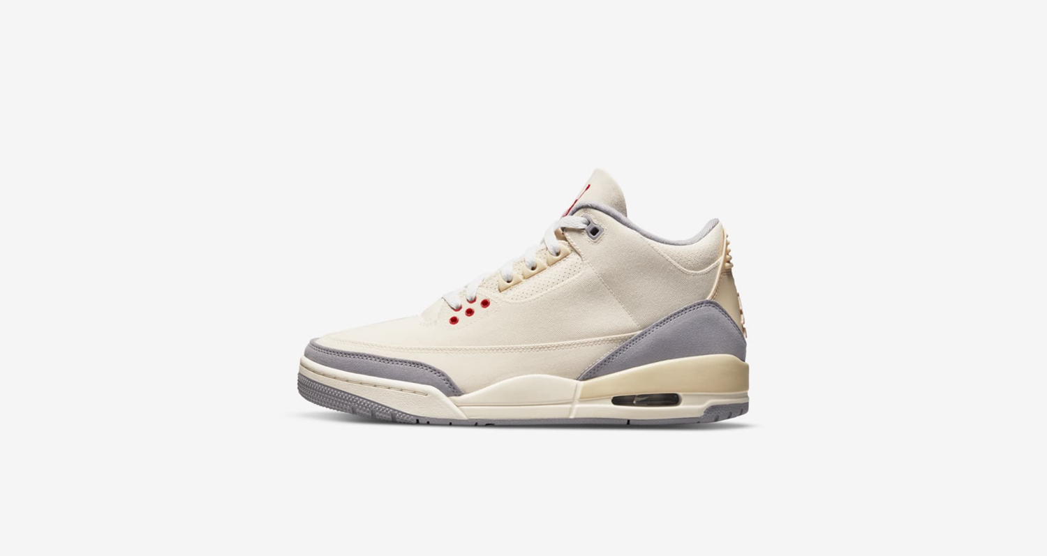 鞋面以奶茶色帆布材质打造,营造出与传统皮革材质 Air Jordan 3 完全不同的质感。