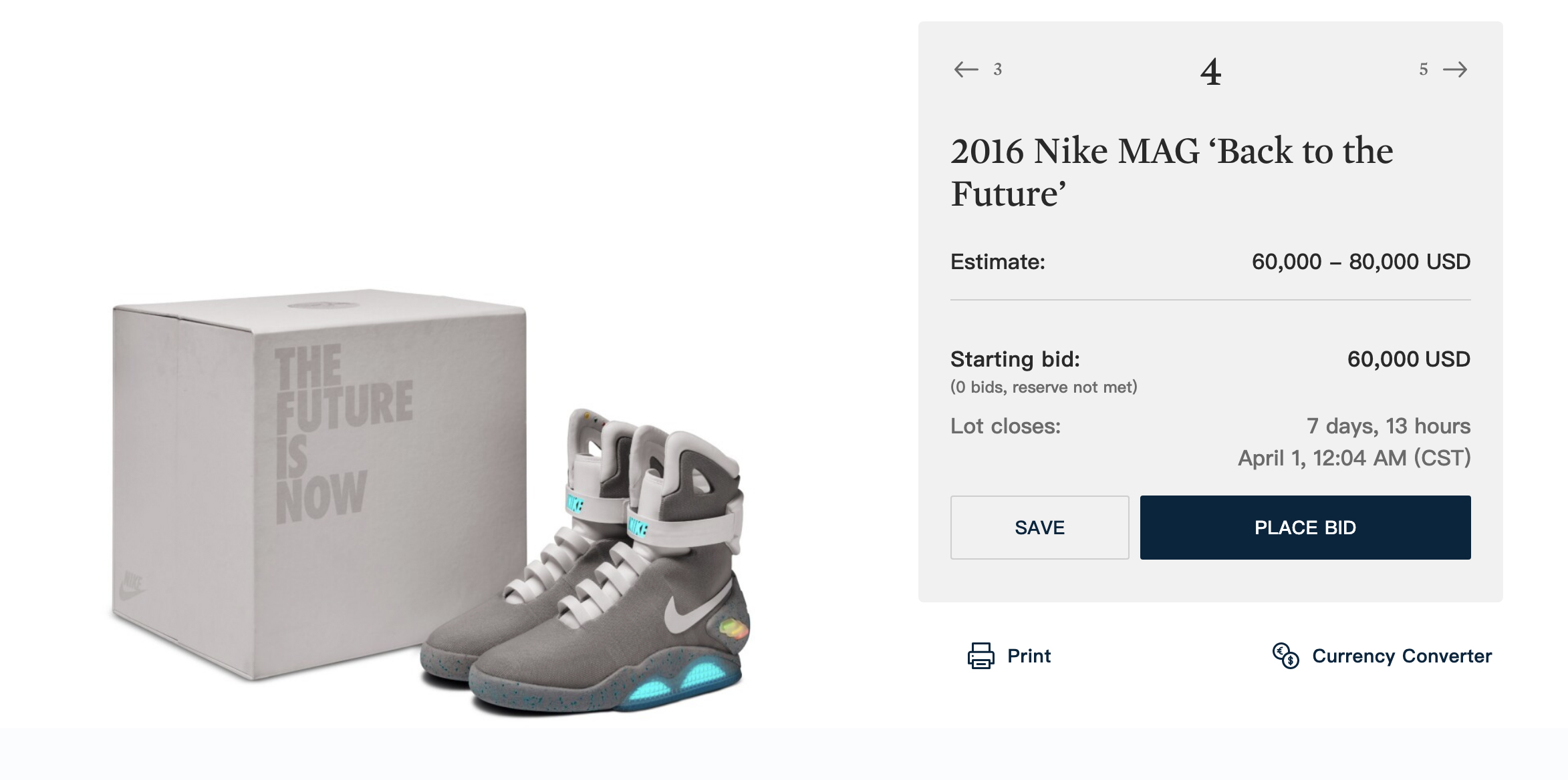 目前竞标价格出在 $22000 美元,相当于 ¥14 万人民币,与当下对应尺码的市场行情差不多。