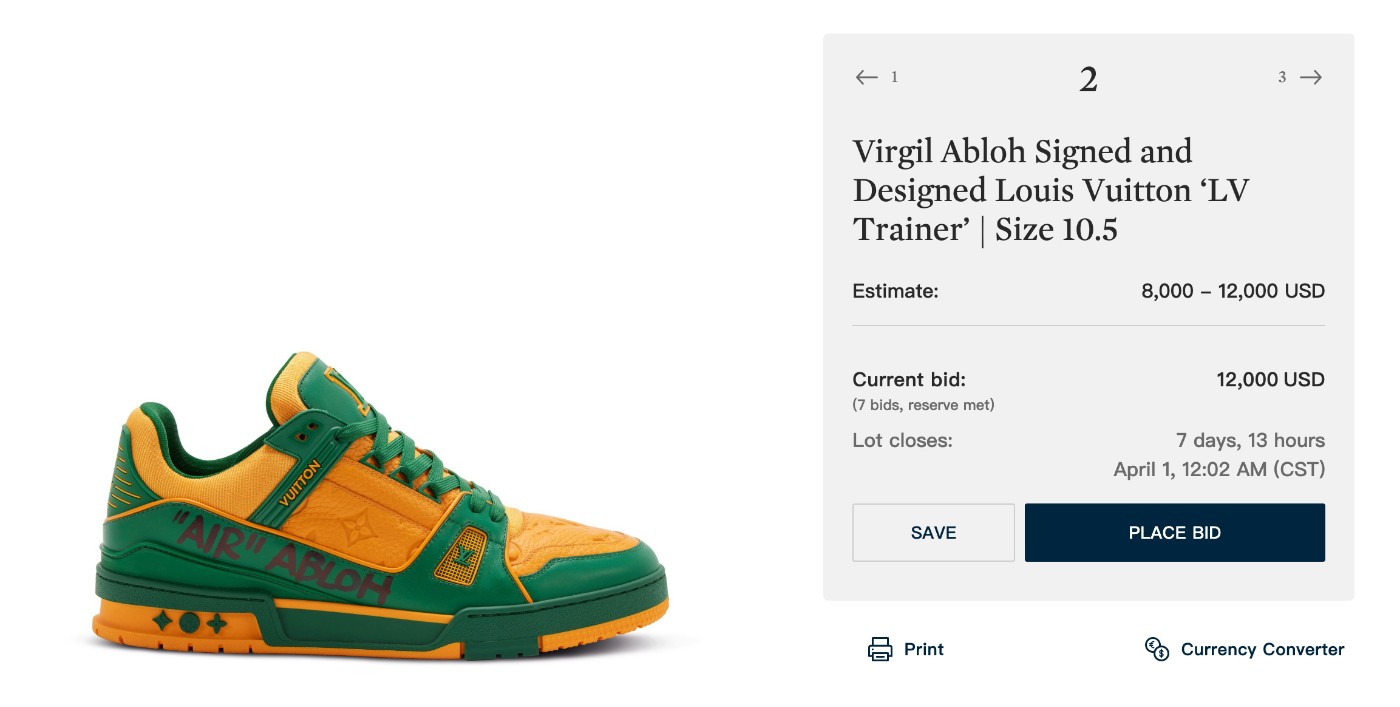继此前苏富比拍卖 200 双限定版 Nike x LV「Air Force 1」后,Virgil Abloh 最深入人心的 OFF-WHITE x Nike「The Ten」近期又登上了苏富比「Modern Collectibles」拍卖会。