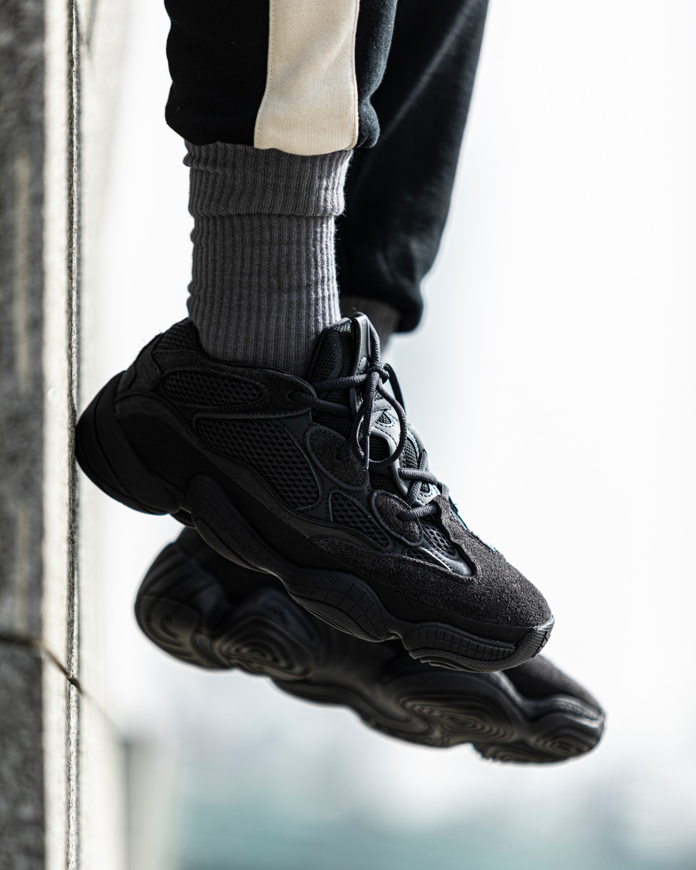 和之前纯黑配色 Yeezy 一样,这双 Yeezy 500 黑武士也有着极为百搭的属性。