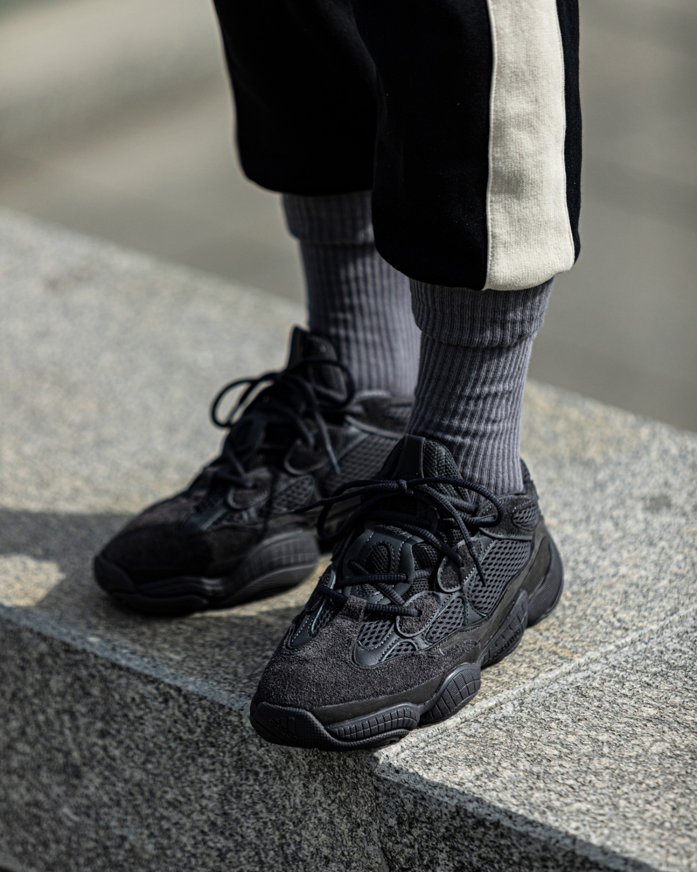 ▼ 2022 版纯黑 Yeezy 500 上脚