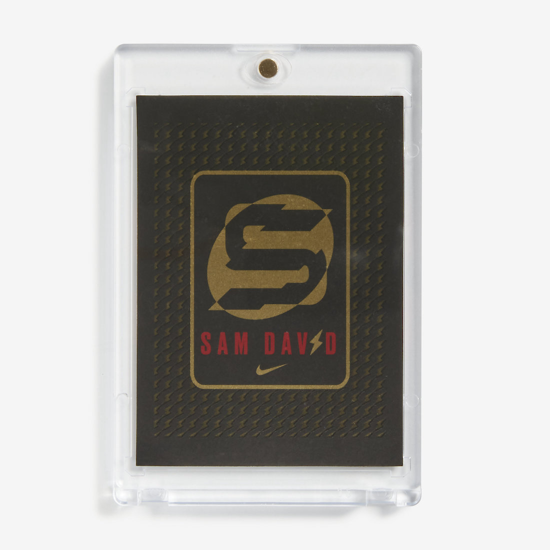 值得注意的是,随鞋附赠气囊吊牌,其中封装了 Sam 的名字缩写、出生年份和他的口号 “永不退缩”。