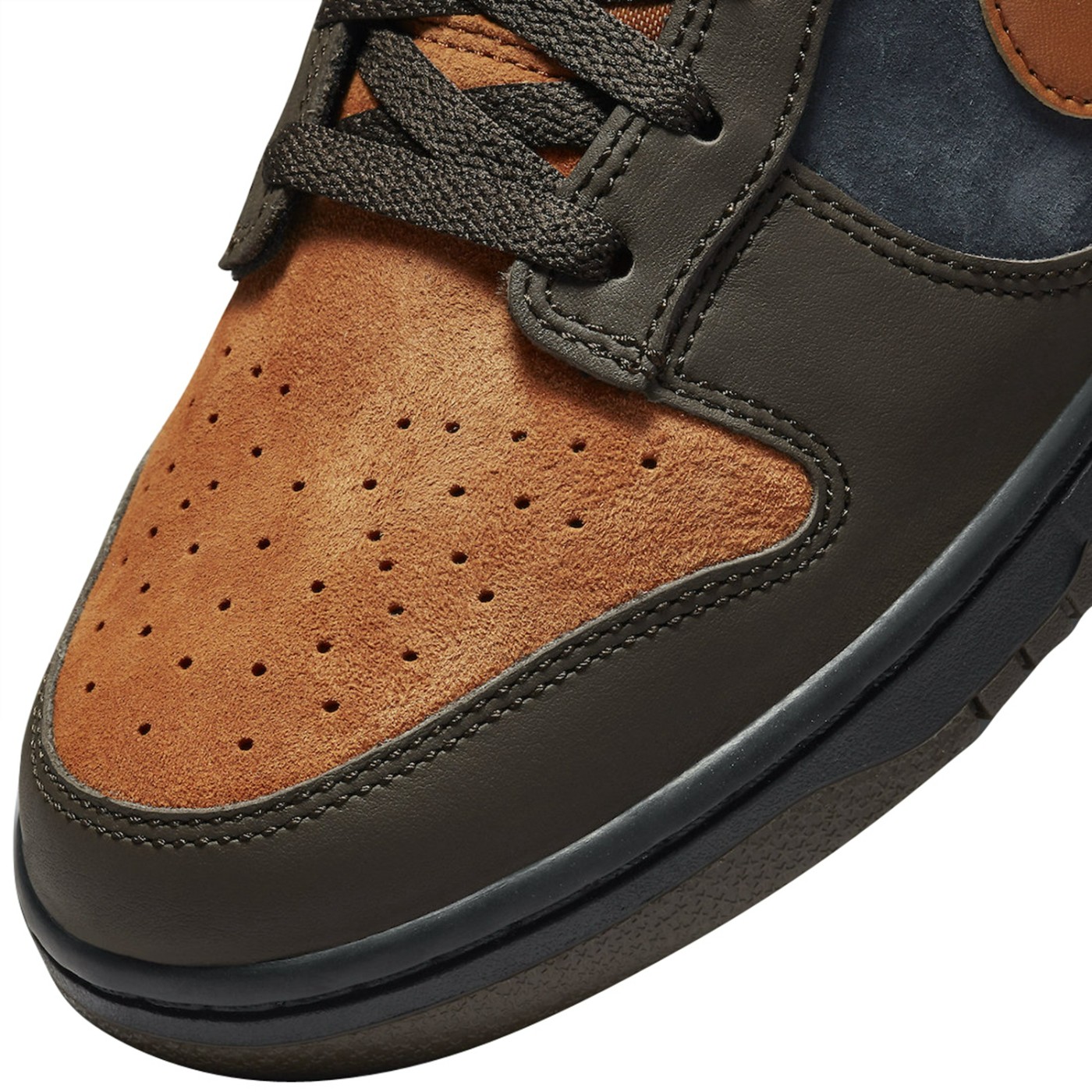 要说最近最火爆的潮流风格,那还得是户外风,这双 Dunk Low 采用「大地色系」为主调打造,棕黄色的鞋身搭配上水泥灰色进行填充,想必 Travis Soctt 看到也要忍不住入手吧。