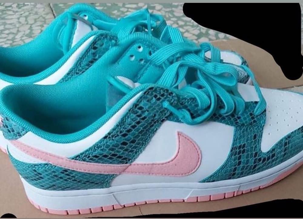 近日,一双全新蛇纹 Dunk Low 首次曝出实物。