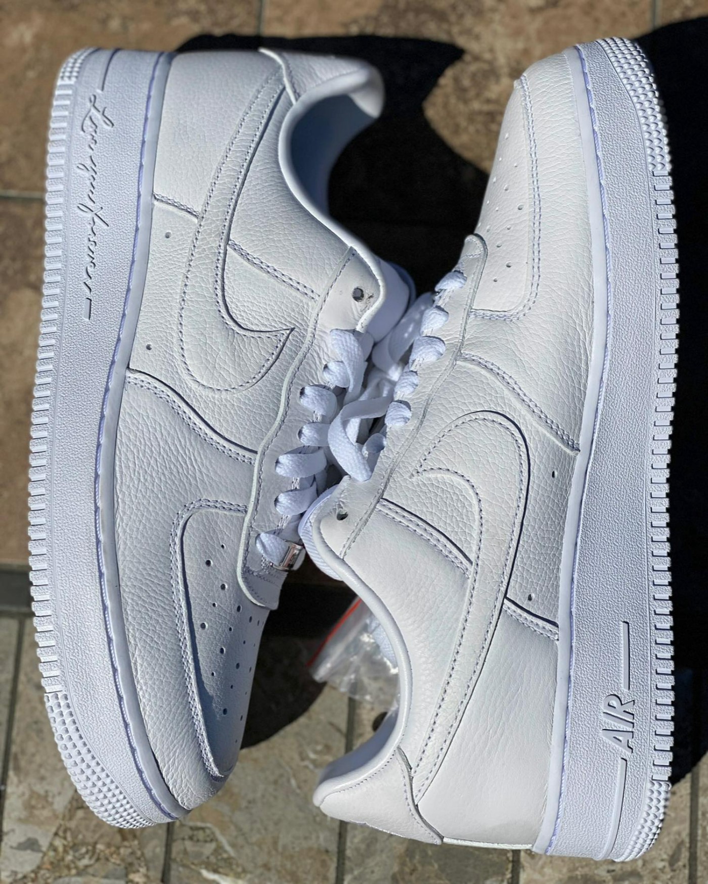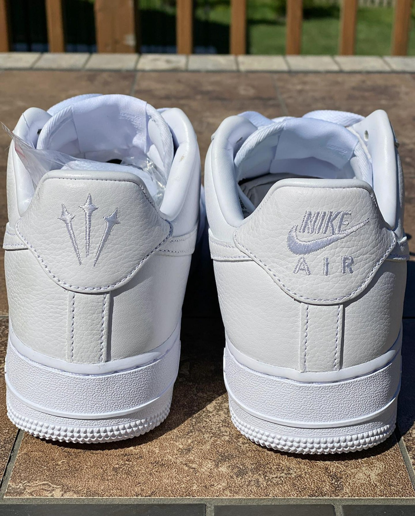鞋后跟用三剑 Logo 替代传统 Air Force 1 鞋款的 “AIR” 字样,彰显联名身份。