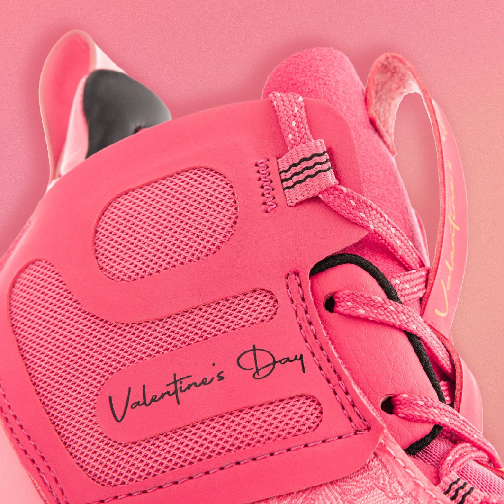 鞋舌、鞋帮带有「Valentine's Day(情人节)」字样,看来是一双迟到的情人节配色。