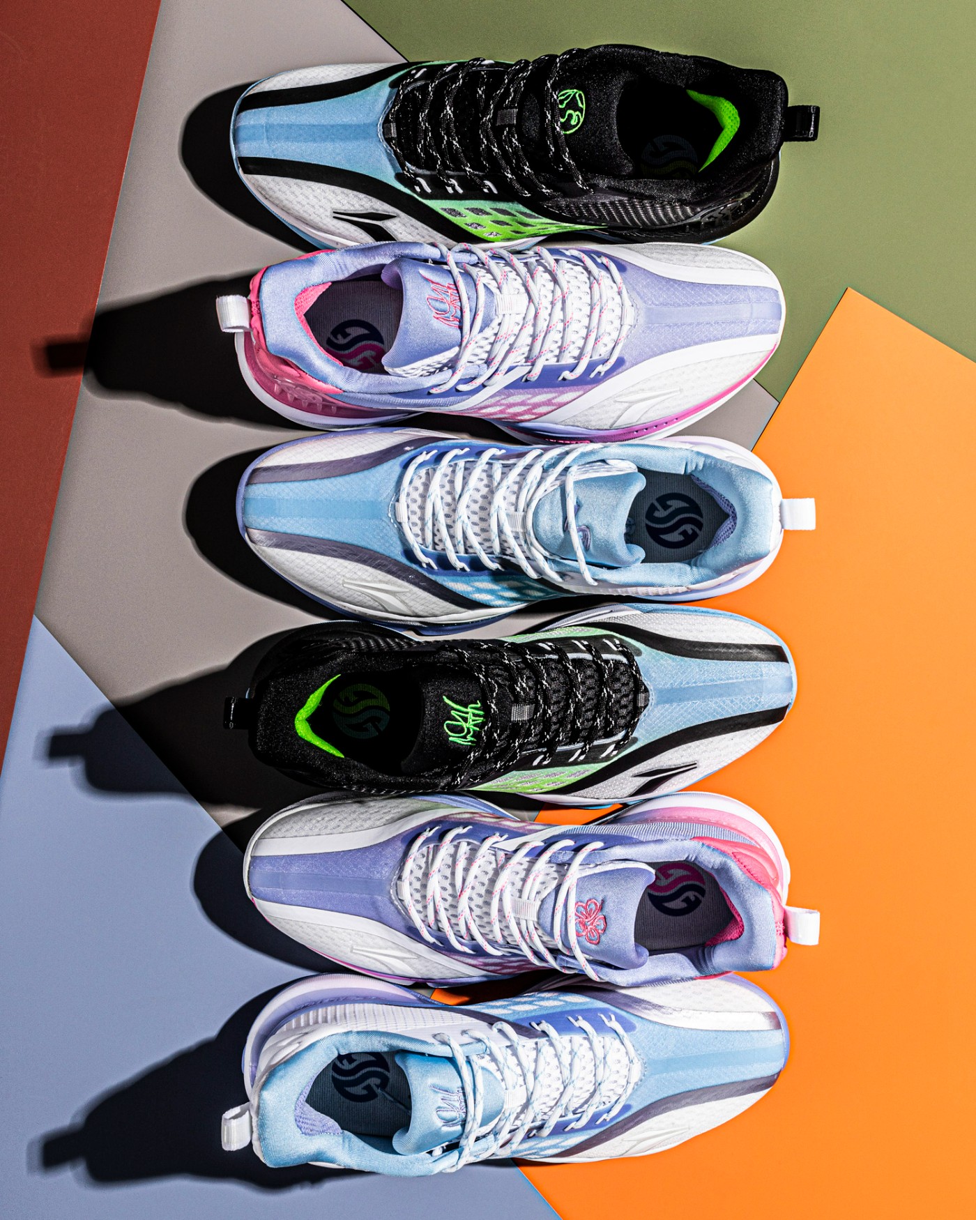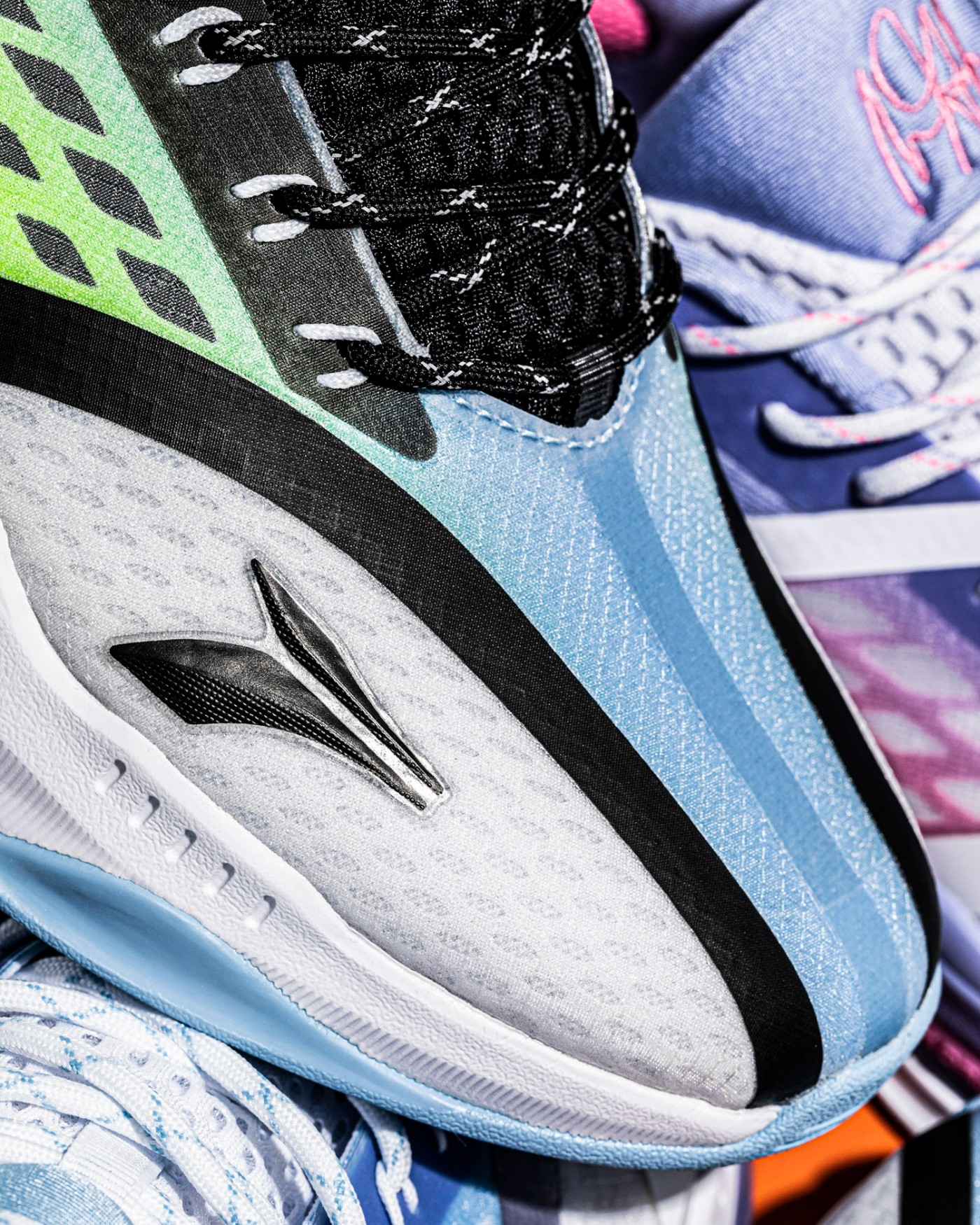 外观上更加契合夏天氛围,几款配色中包含了荧光绿、白色、天蓝、粉色等清新活泼的颜色,其中还不乏此前大火的「冰刀」配色!