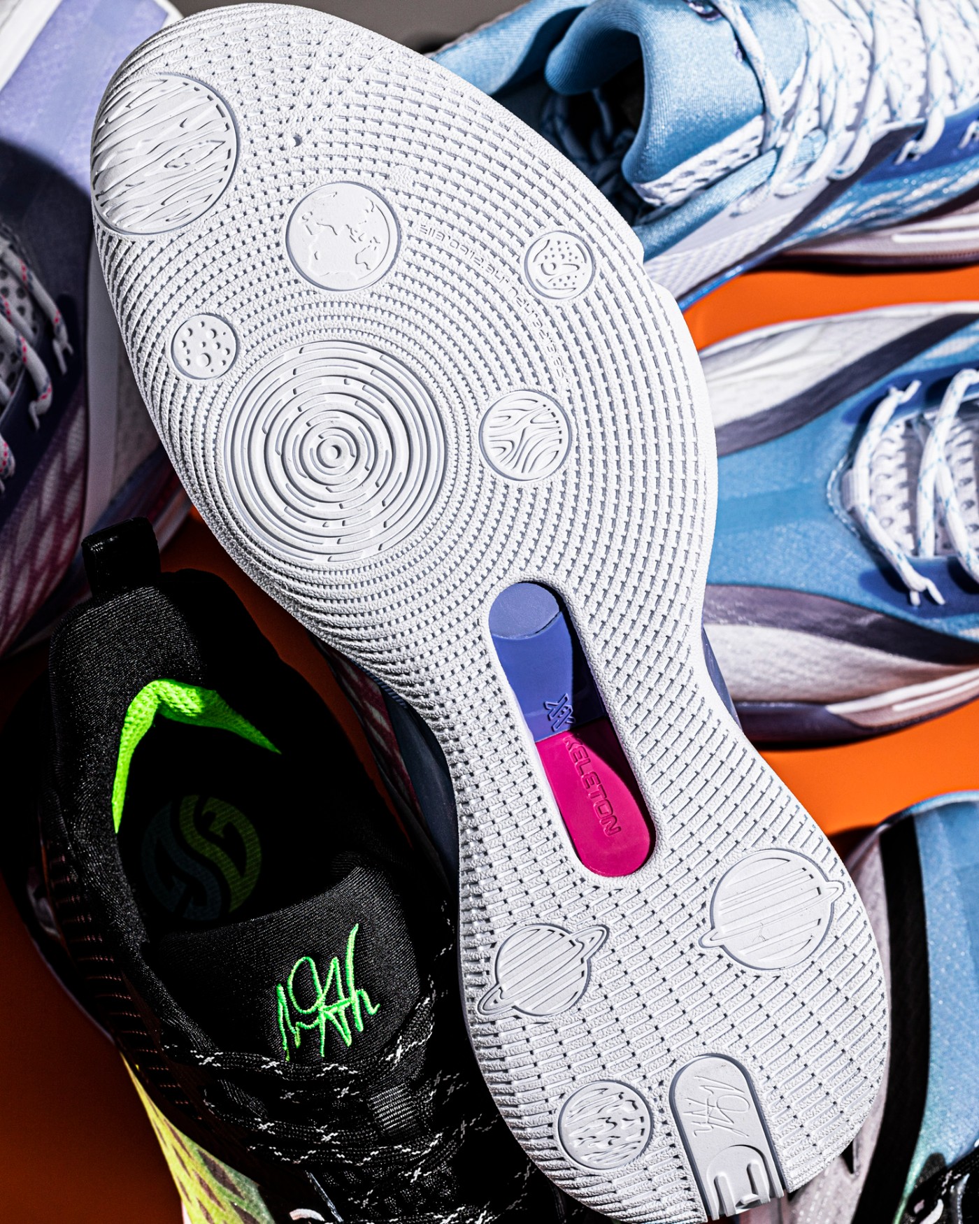 在首款 AG1 备受好评的基础上,AG2 以太空 [未来舱] 为设计出发点,整体造型呈现出强烈的太空科幻感,361° 希望这双鞋带来犹如驾驶未来舱遨游球场的实战体验。