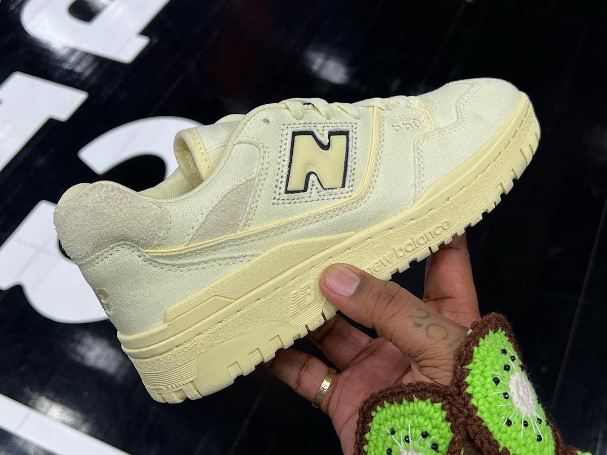 基于 New Balance 目前大热的篮球鞋 550 打造,鞋身采用米白色调,呈现做旧视觉效果。