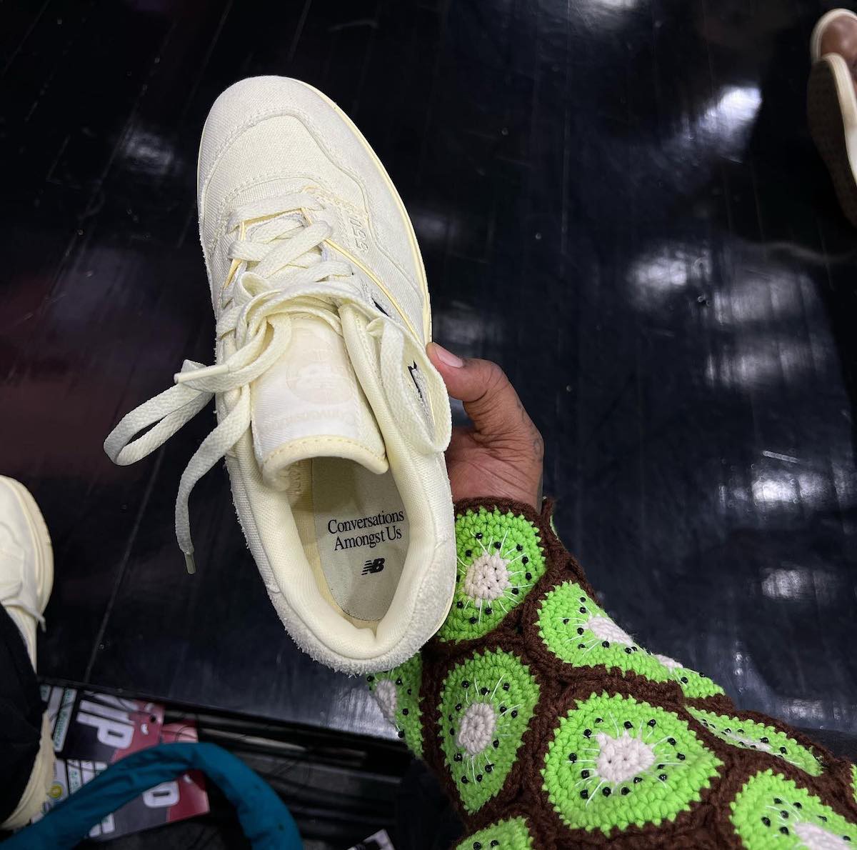 鞋垫和鞋舌标签上的 “Conversations Amongst Us” 点明鞋款主题,意在促进人们之间的沟通交流。