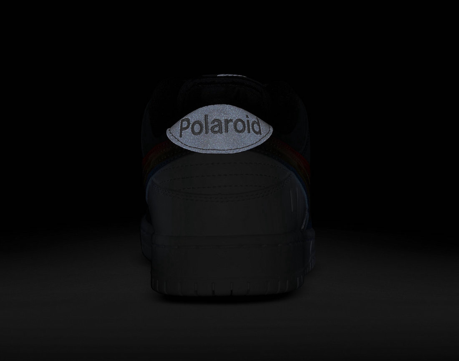 后跟部位分别点缀 Polaroid 与 Nike 刺绣,同时暗藏 3M 反光,还原闪光灯场景。