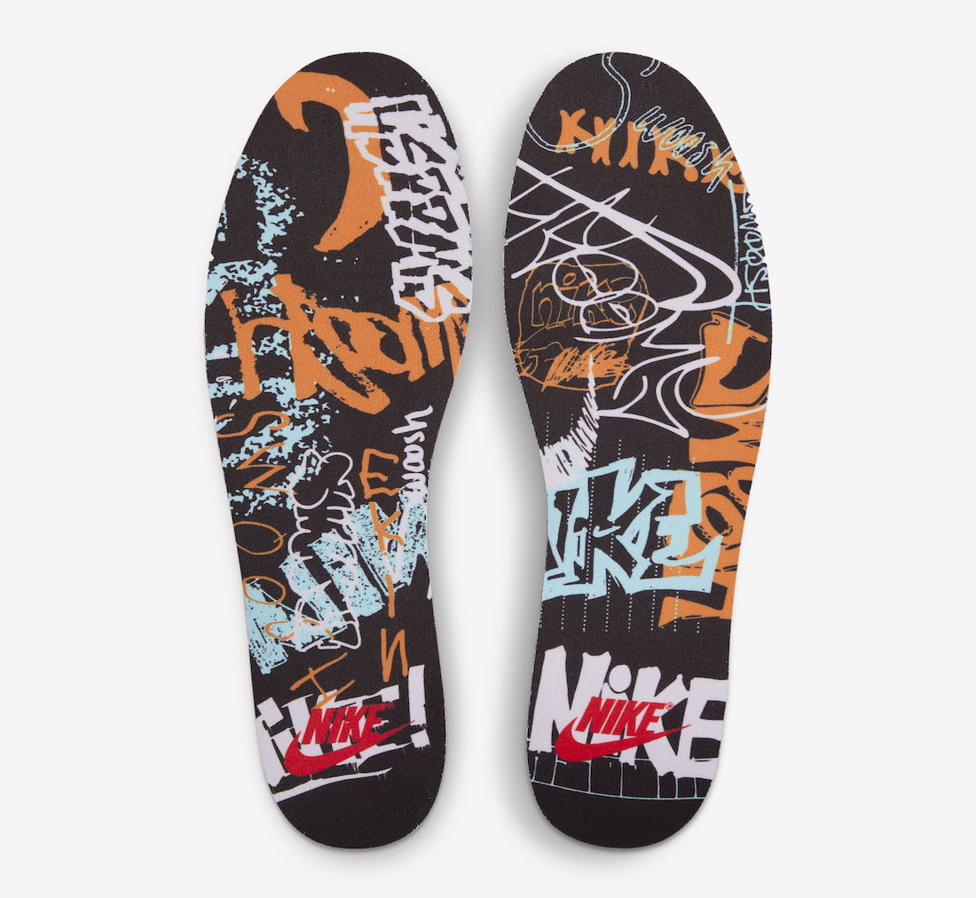 不同于普通 Dunk Low 鞋款,鞋垫和鞋盒都有满印的街头涂鸦图案,呼应此次涂鸦主题。