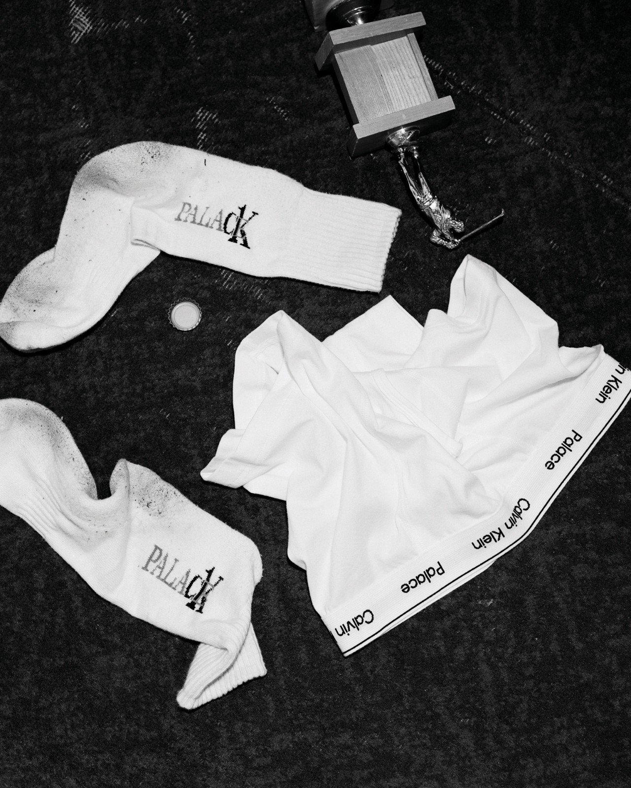 将 Calvin Klein 经典标志和 Palace 彭罗斯三角 LOGO 合二为一。