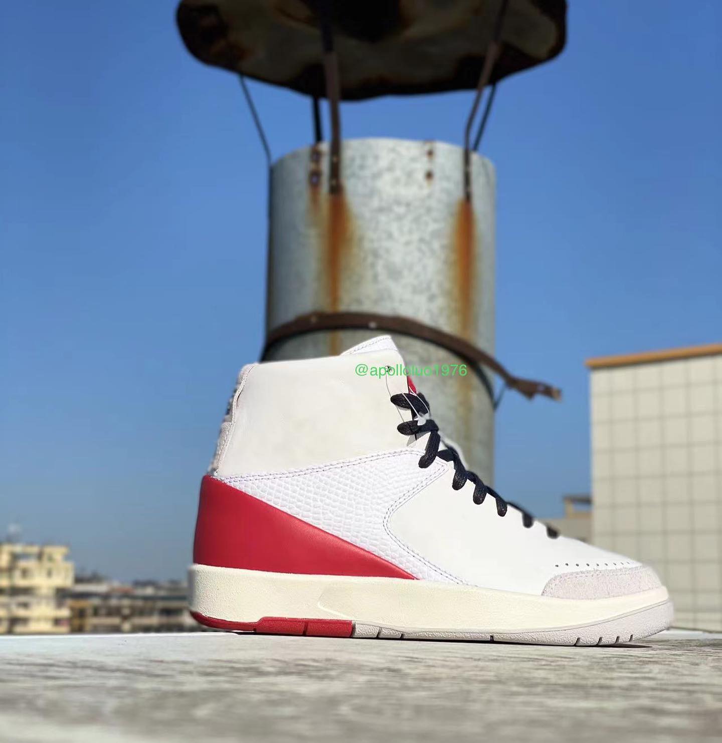 这双联名 Air Jordan 2 保留了经典白红配色方案,全皮质鞋身带来奢华的质感。