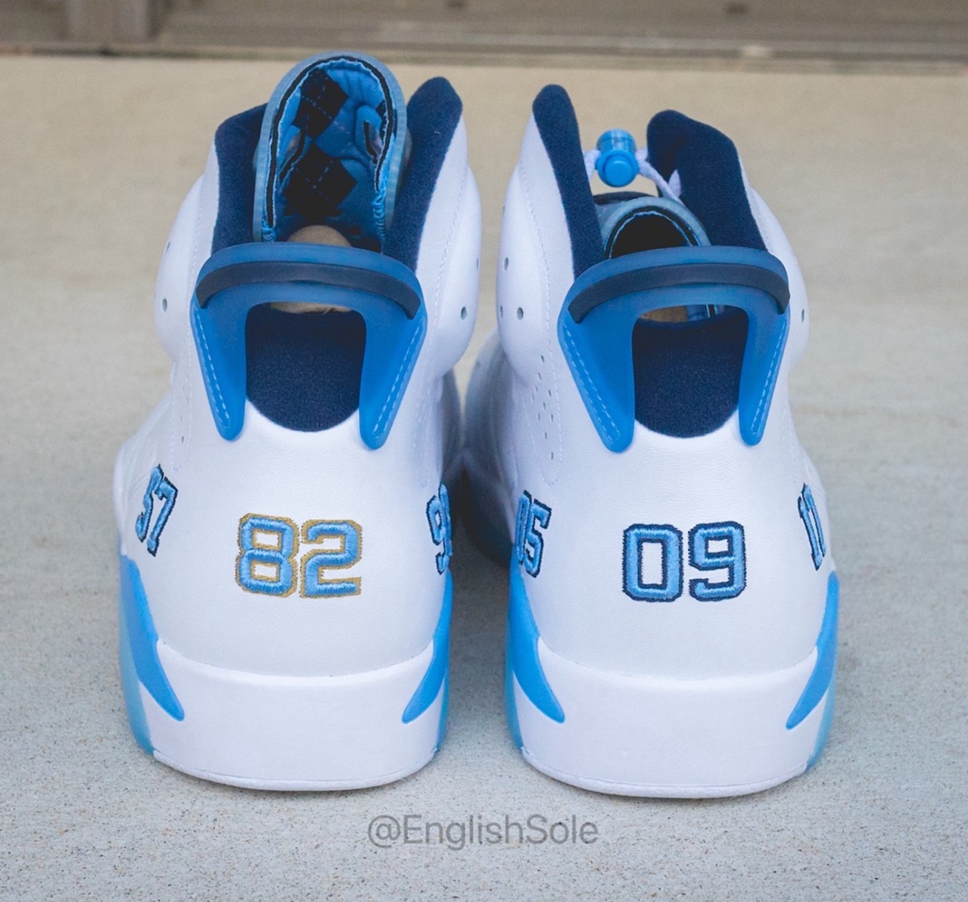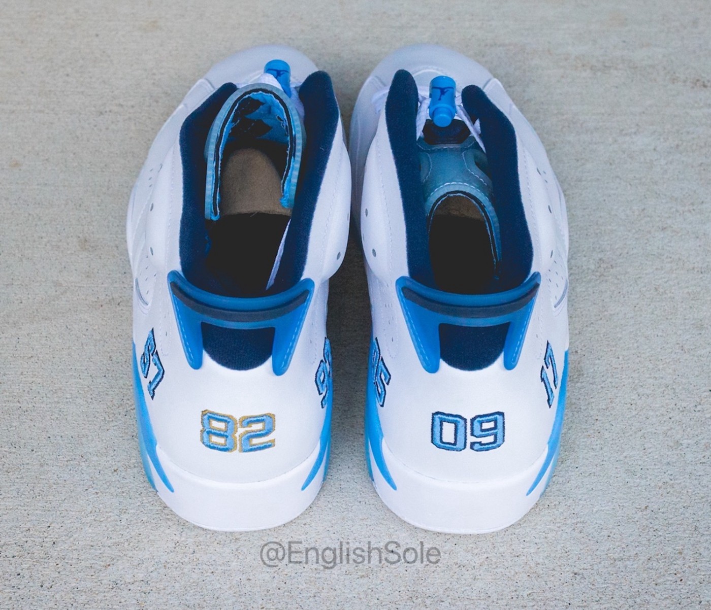 近日,一系列纪念 2017 年北卡夺冠的 Air Jordan 6 UNC PE 释出了实物图。