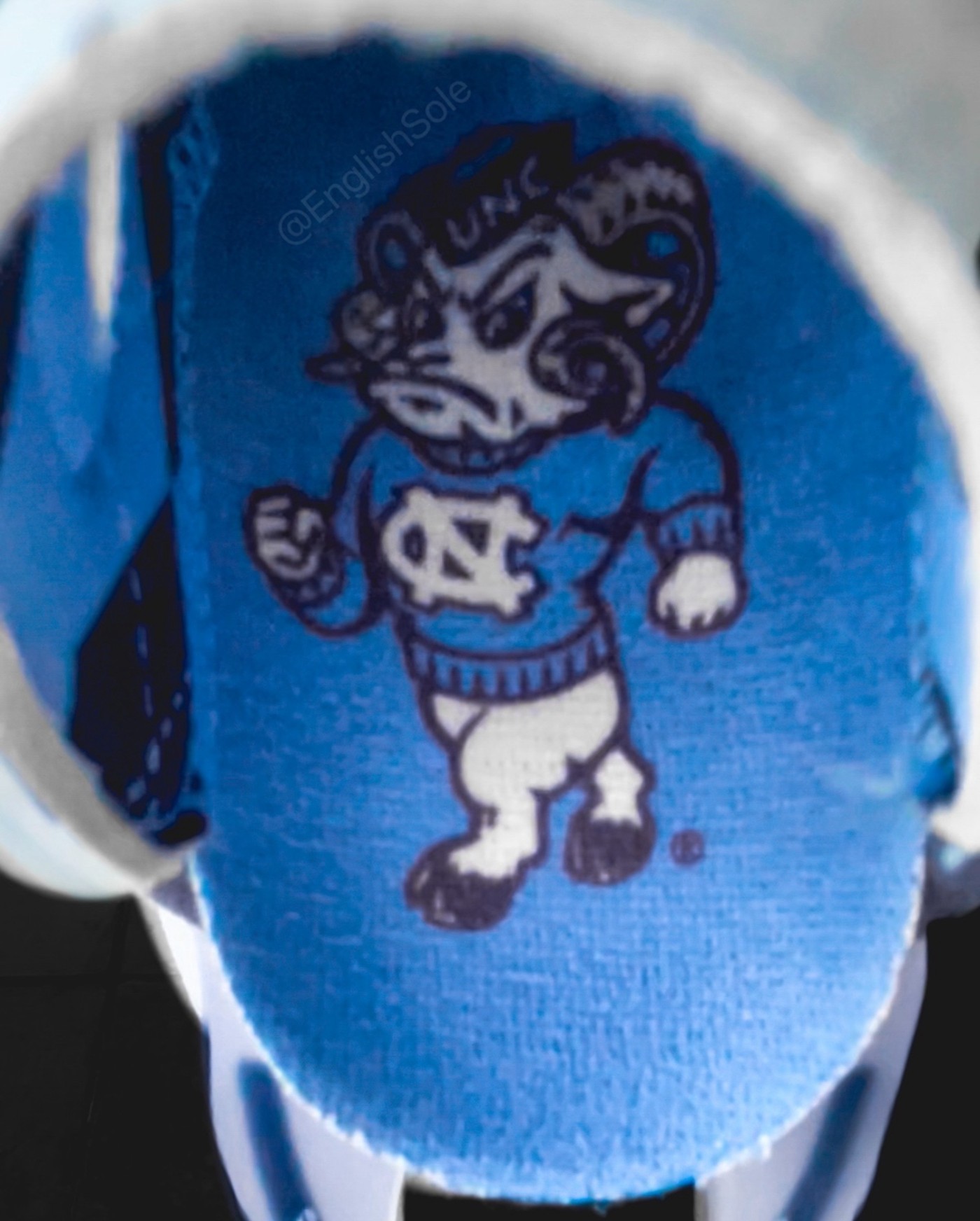 中底和后跟提环都使用北卡蓝的配色,突出 UNC 的配色主题。