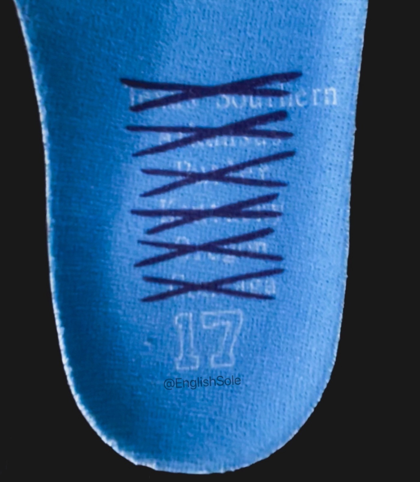 鞋垫上印有北卡篮球队的队徽,以及 2017 年夺冠路上所击败的球队名字,纪念意义不言而喻。