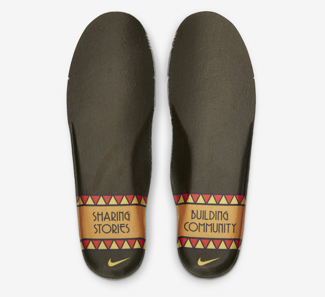 鞋垫上印有 “Sharing Stories” and “Building Community” 字样,呼应鞋款主题。