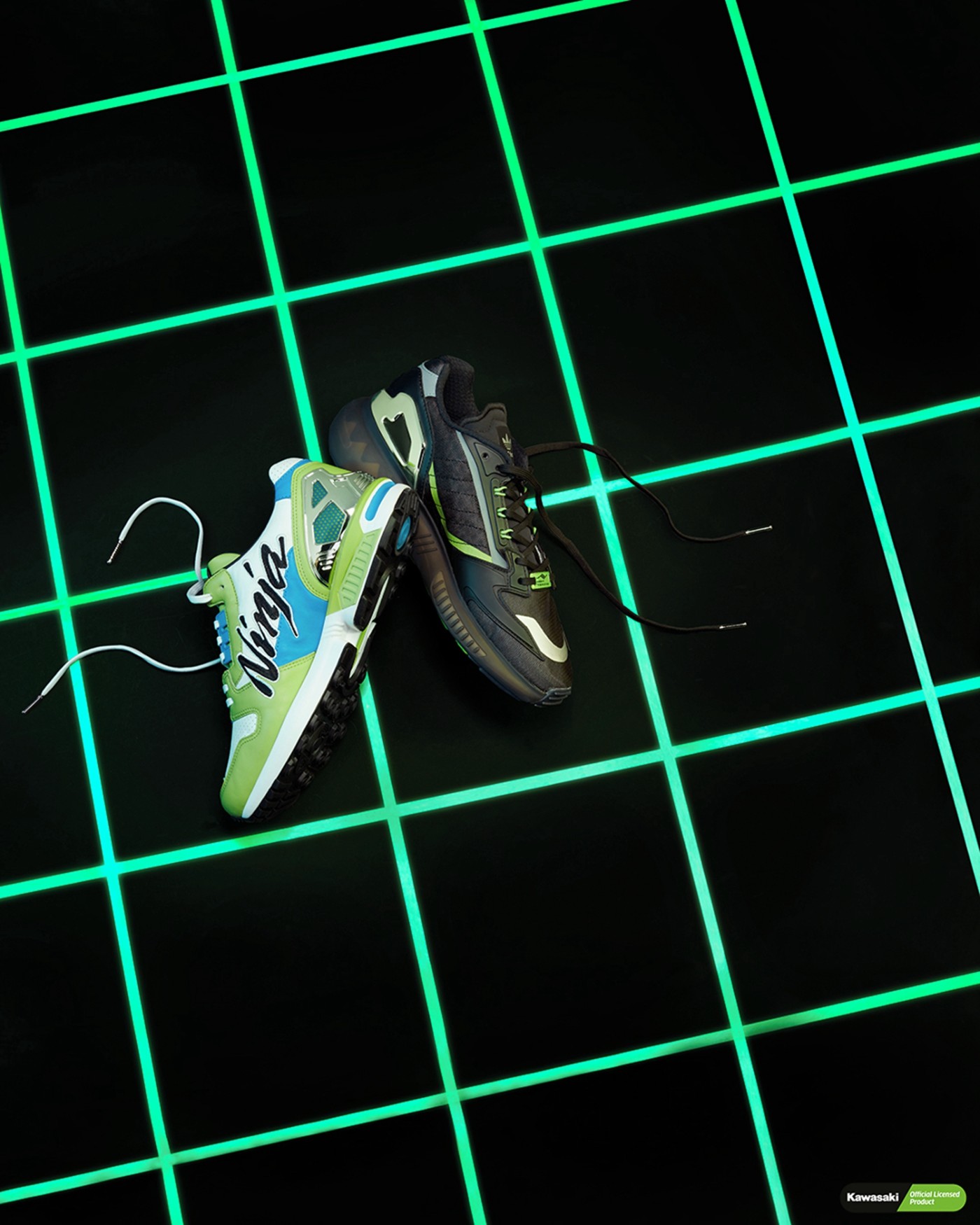 此次联名以 Kawasaki 知名摩托车系列 Ninja 为创作灵感,推出一双 ZX 5K Boost 以及一双 ZX 8000。